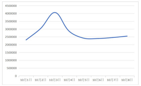 中消协利用互联网舆情监测系统,对10月1日至8日相关消费维权情况进行网络大数据舆情分析,共收集到“消费维权”相关信息21923881条,日均约274万条。10月3日信息量达到峰值,为4060819条。