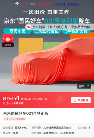 “国民好车”001号上线京东拍卖,首位车主将通过竞拍产生