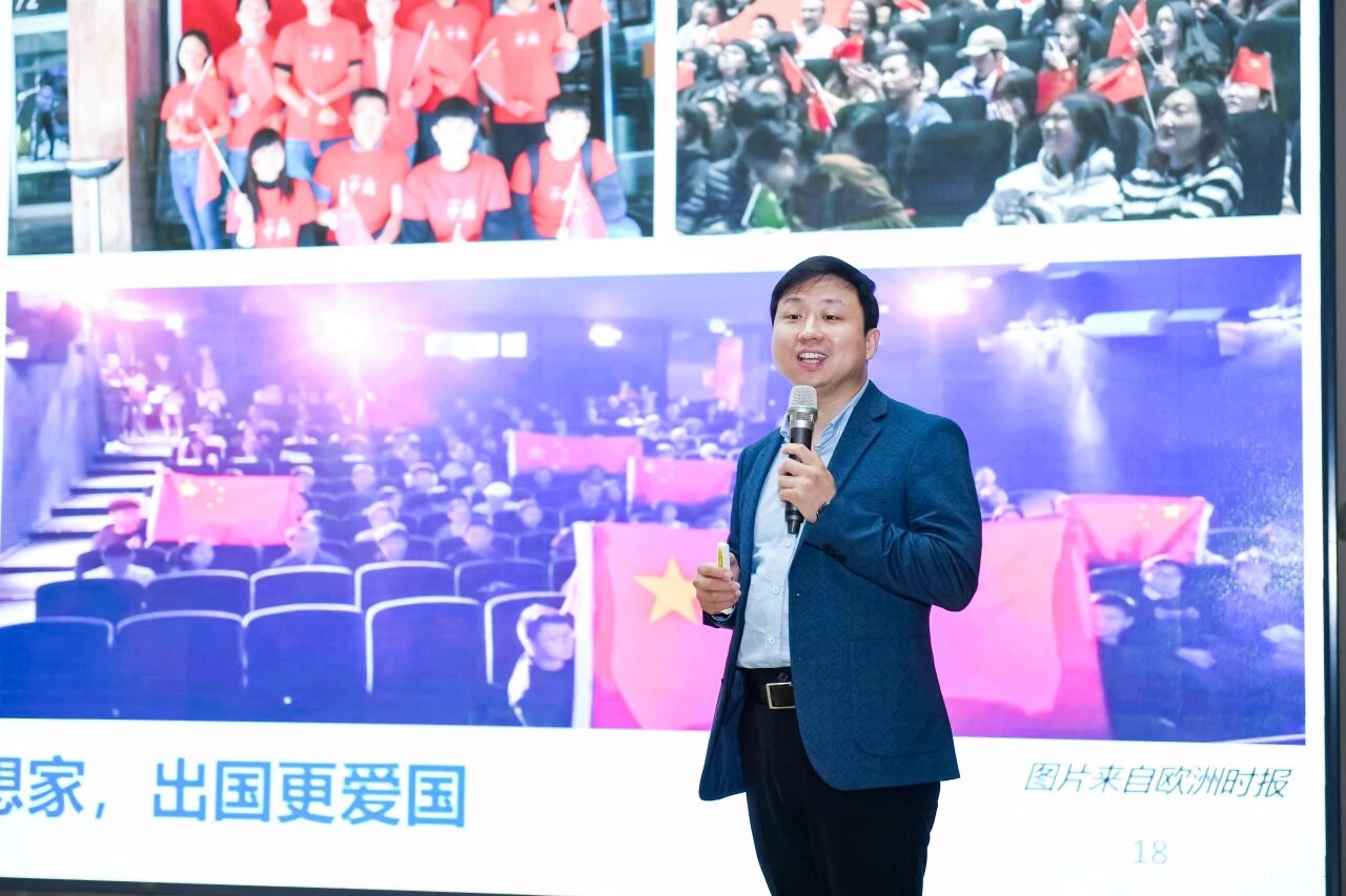 国家新能源汽车技术创新中心有限公司总工程师刘朝辉现场宣讲驶向新能源汽车的创新征程。图/北京理工大学