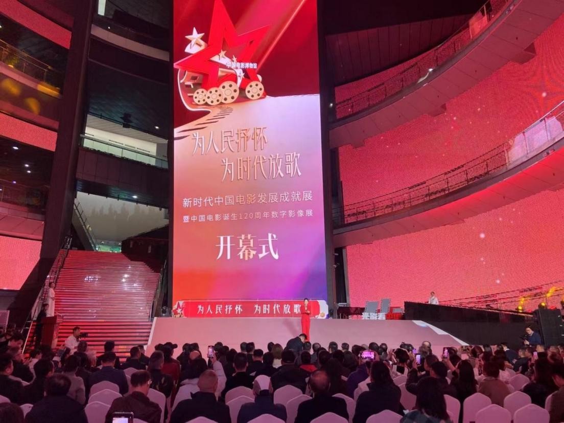 在热烈的掌声中,与会嘉宾代表共同为《为人民抒怀 为时代放歌——新时代中国电影发展成就展》及《中国电影诞生120周年数字影像展》揭幕。