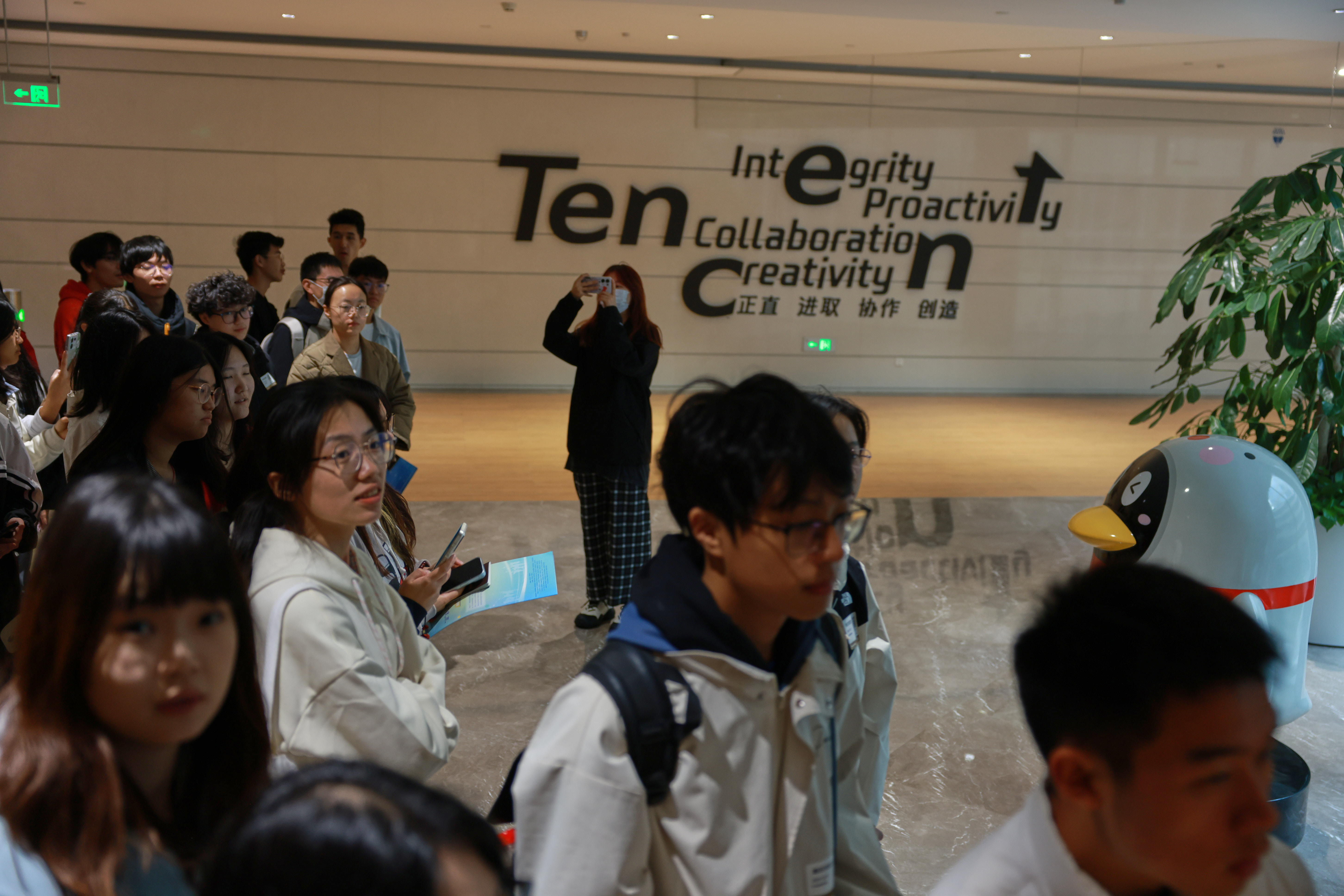 在当天的活动中,两所高校的师生从云广场出发,依次探访了中关村软件园展示中心、腾讯北京总部大楼、科大讯飞人工智能体验馆等多家科技地标。通过实地走访与深度观摩,大家不仅近距离感受到科技产业园中浓厚的创新创业文化,也沉浸于开放协作、追求卓越的园区氛围之中。在每一处参观点,师生们都深切体会到科技与文化产业深度融合所带来的活力,见证了从技术研发到场景应用的完整创新链条,切身感知国家前沿科技所承载的探索精神与产业使命。