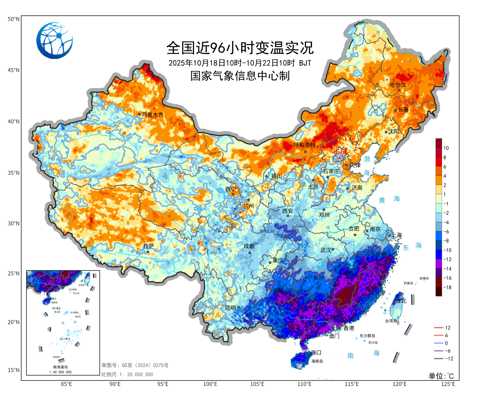 据气象部门消息,从10月16日至21日,有较强冷空气将自北向南影响我国大部分地区,带来今年下半年以来的最低气温。气象监测显示,在冷空气的影响下,10月20日早晨,气温0℃线抵达华北中部一带,北京南郊观象台最低气温达到零下0.5℃。