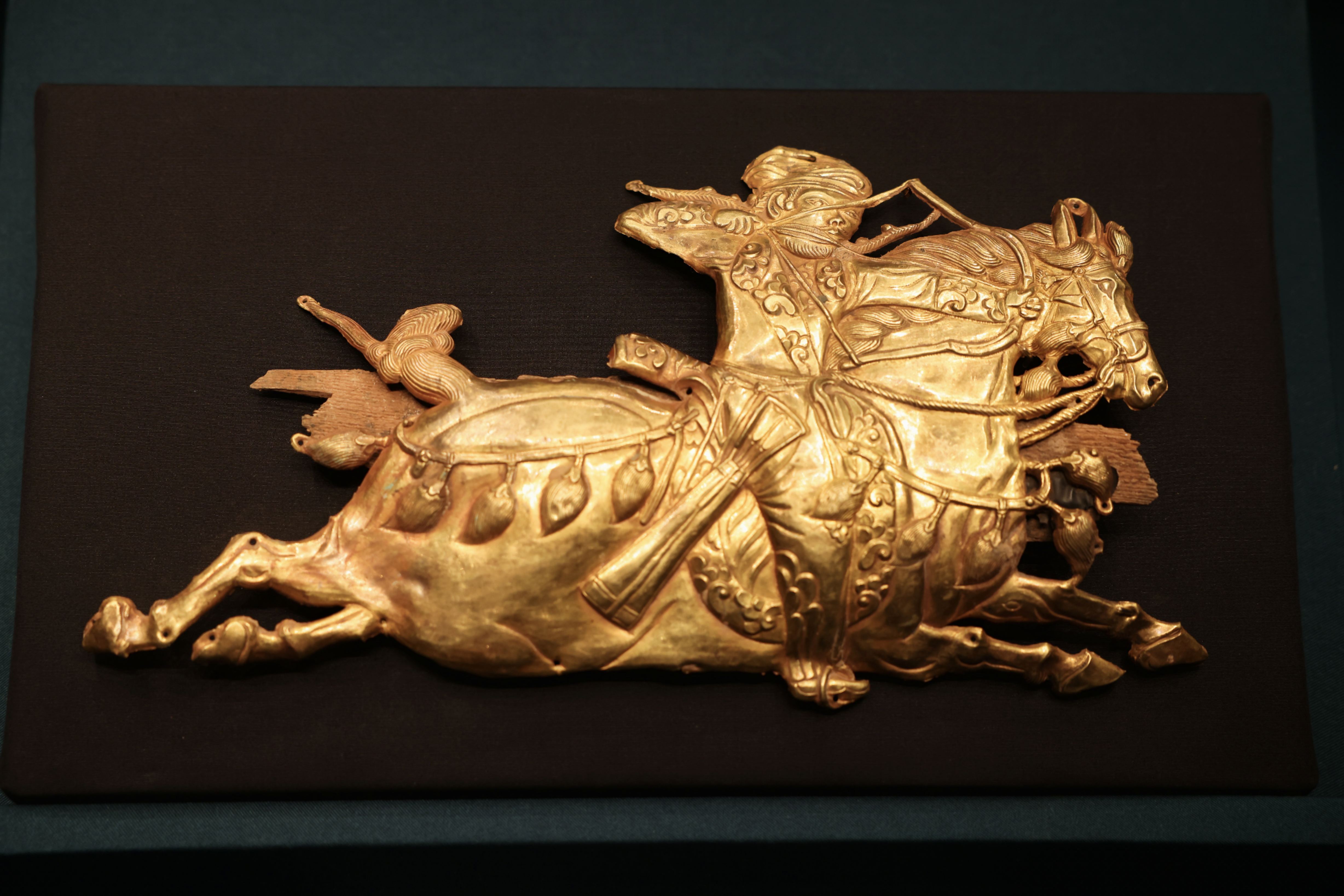 “大家可能会发现,很多金器和草原文化、草原部落、草原贵族息息相关,这是因为中原汉人更尚玉器,而黄金最初是草原民族的一种装饰,特别是一些马具,能体现‘马背上的民族’特色。”赵婧说。