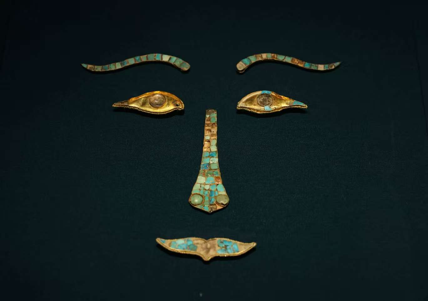 吐蕃时期嵌宝石覆面。新京报记者 浦峰 摄
