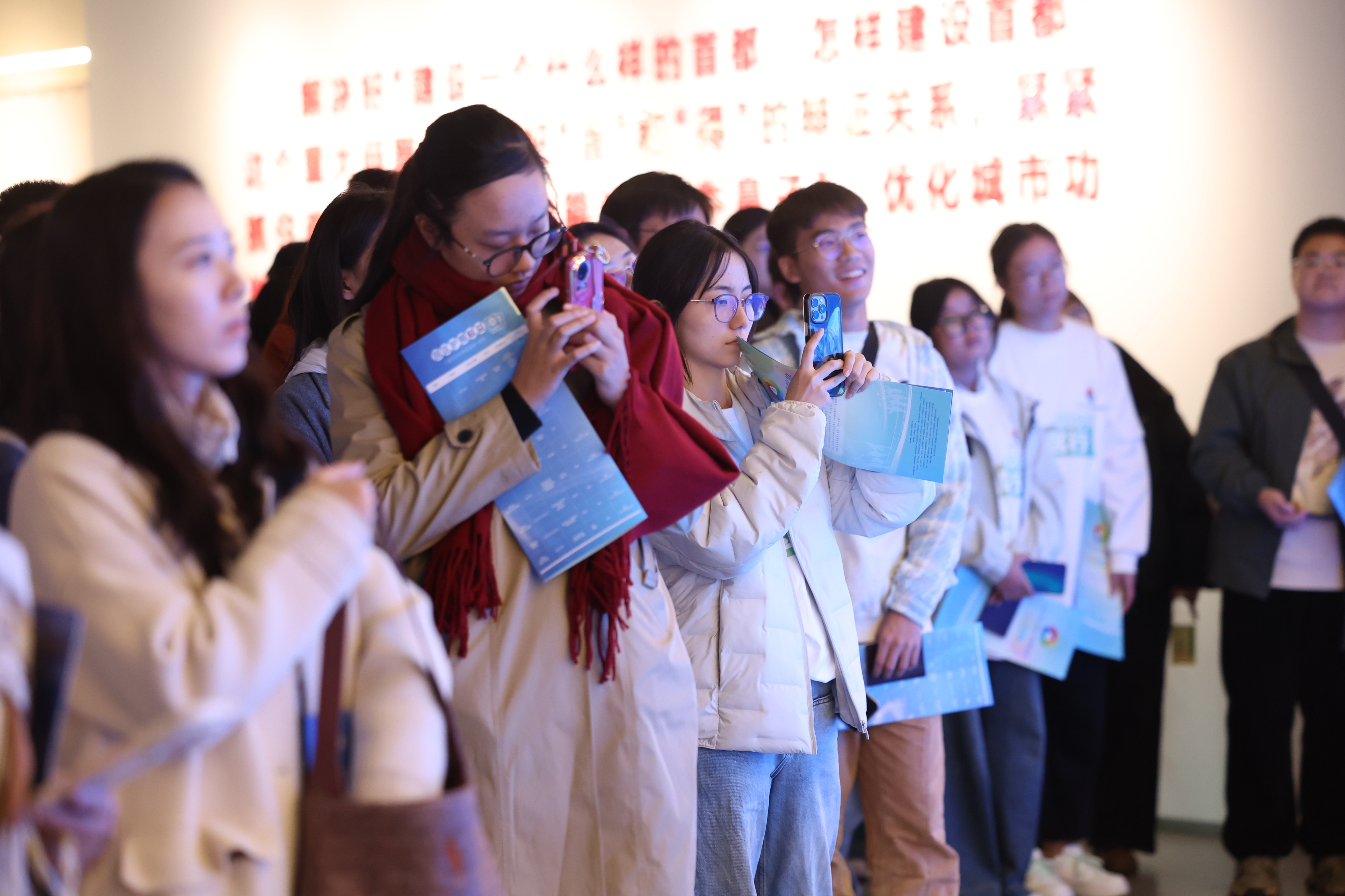 “北京中轴线是肇始于元,成型于明,完善于清,是一条气魄雄伟、独具中国气质的中轴线,是对中华文化特质和魅力的集中展示。”跟随着工作人员的讲解,学生们进入了数智创新中心的展厅,了解南中轴地区的历史沿革、风土人情,以及首都商务新区的产业和功能规划。