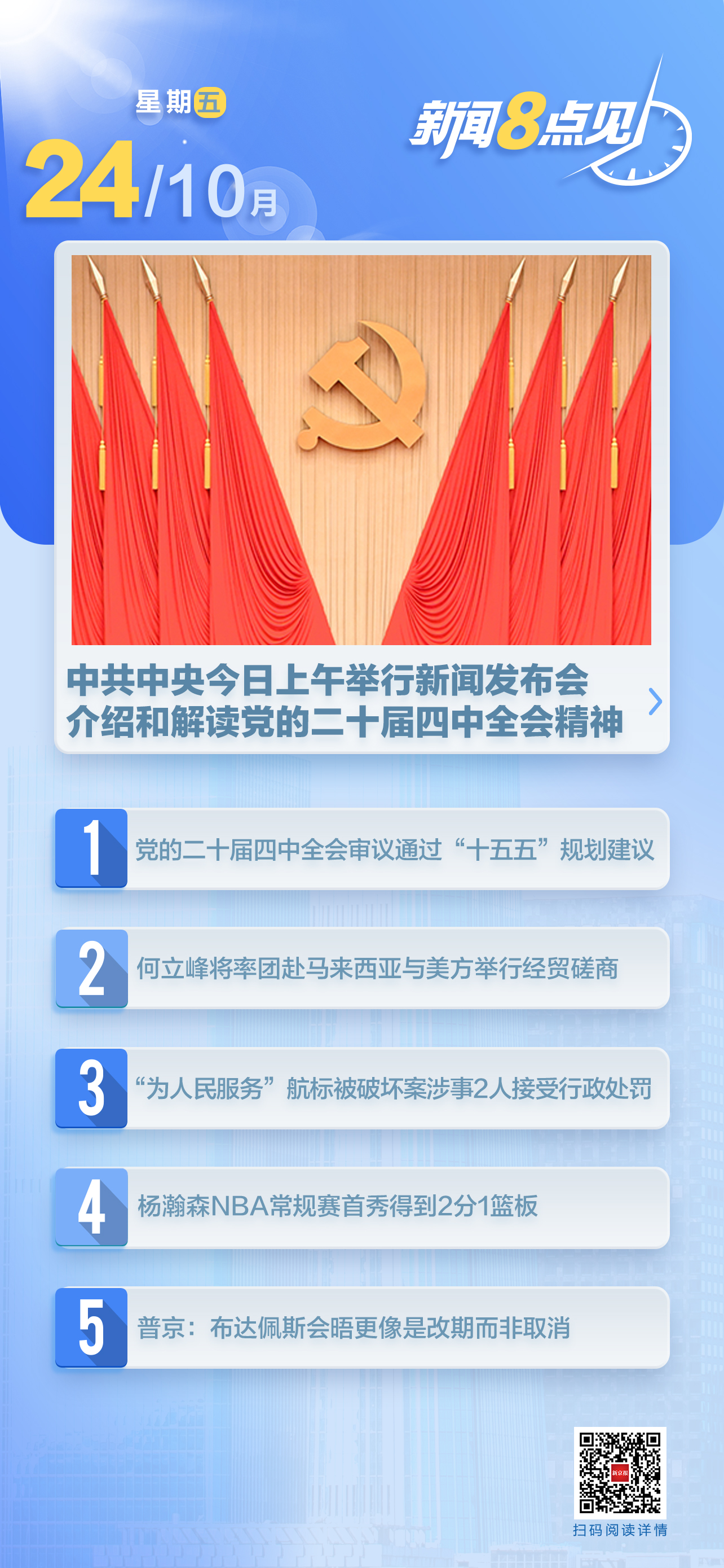 中共中央将于24日上午举行新闻发布会 介绍和解读党的二十届四中全会精神