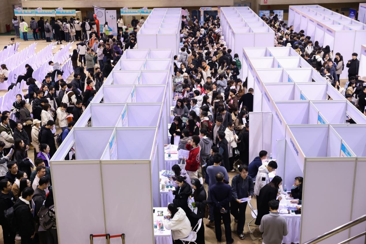 随后的高层次人才专场招聘会现场,百家苏州市链主企业、科研院所、专精特新企业、上市企业、国有企业、高能级科创平台等优质用人单位集体亮相,带着海量优质岗位与高校毕业生面对面洽谈对接。