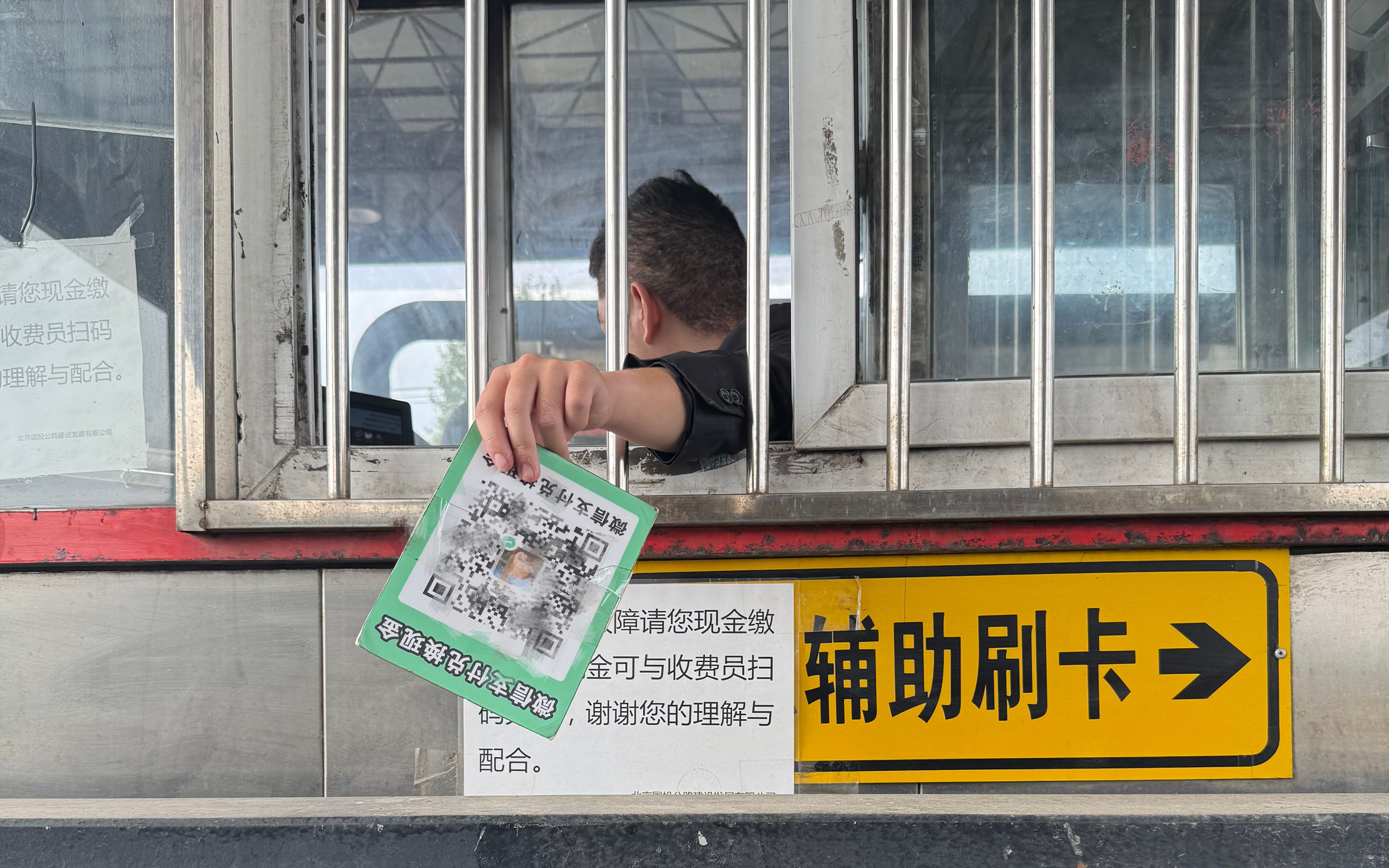 110国道京青线莲花滩收费站,需要扫描工作人员个人微信收款码付通行费。新京报记者 曹晶瑞 摄