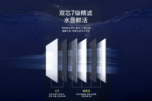 MRO复合滤芯:集成五级过滤,搭配进口杜邦RO膜,深度去除细菌、病毒、重金属离子,同时改善饮水口感;