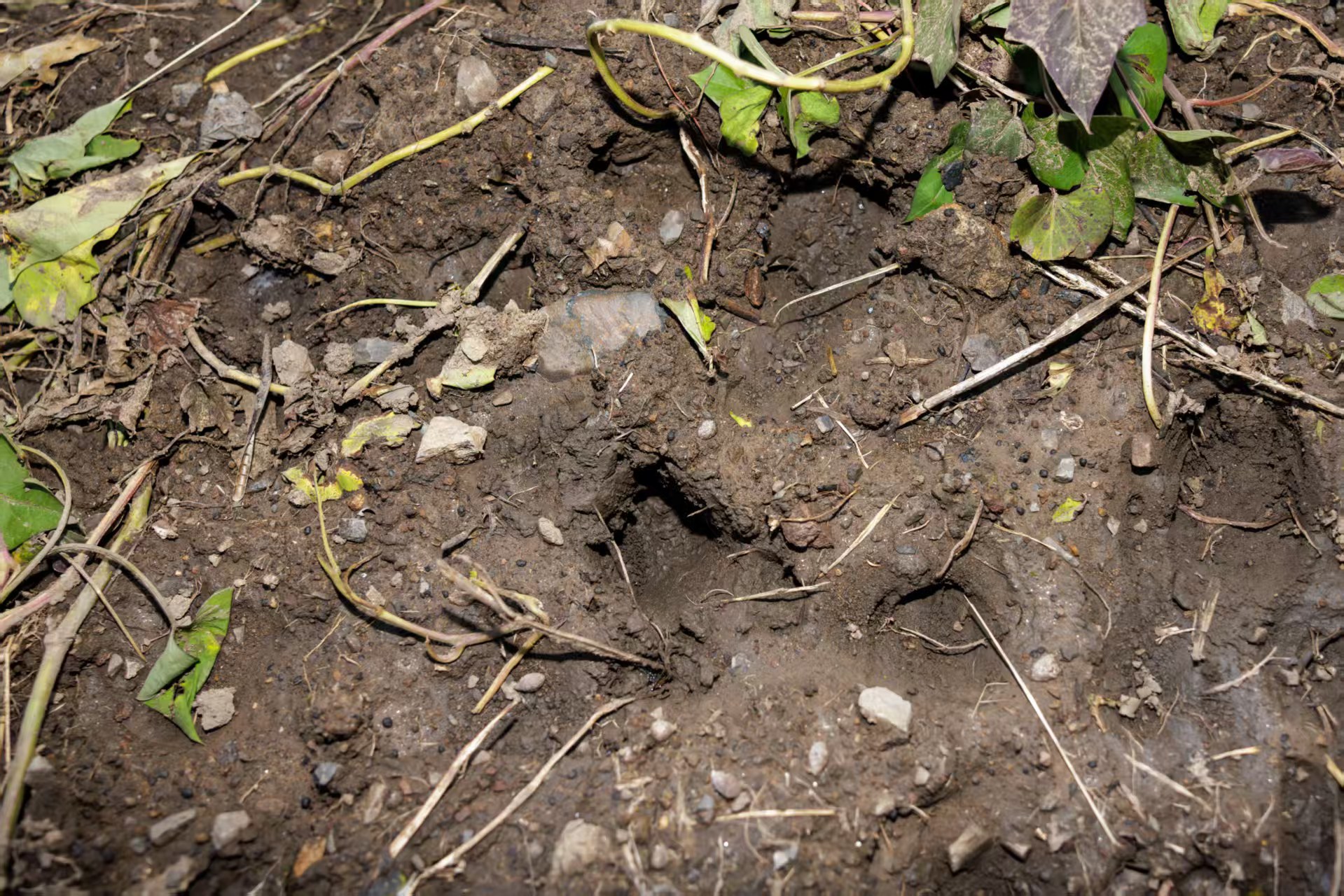 那是一片即将成熟的红薯地,旁边还种着谷子、藜麦等。过去的一个月中,这片红薯地完全成为那群野猪的“食堂”,一亩多的红薯地里,看不到几株红薯秧,整片地几乎被野猪翻了一遍。10月中旬,记者在地里看到,土地上遍布蹄痕,地中央还有野猪打窝留下的浅坑,大的直径一米多。“野猪大概在十年前出现的,今年突然多了起来。”王进军说。