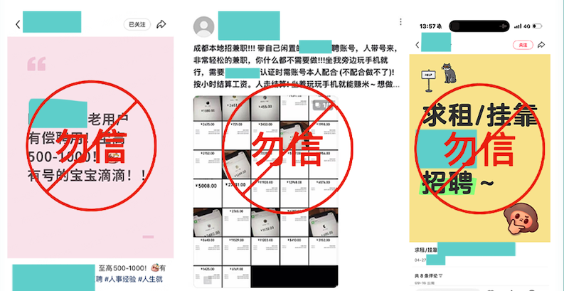 BOSS直聘相关负责人表示,黑灰产在发展“简历工具人”过程中,往往会使用“兼职”“副业”等具有较强的迷惑度的表述,求职者与招聘者切勿轻信。同时平台也会持续加强技术投入,保持高压打击力度。
