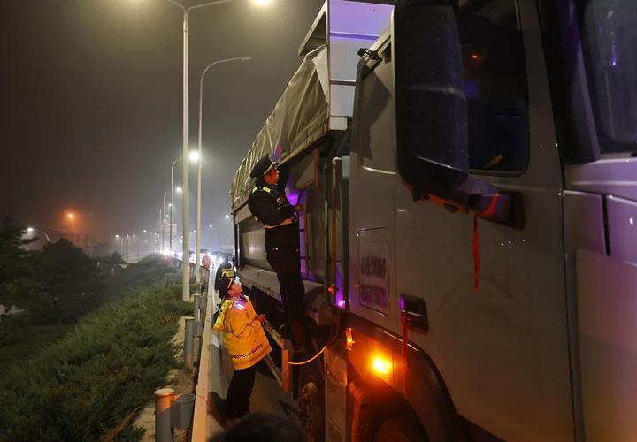 记者了解到,为巩固道路遗撒整治成效,持续优化道路通行安全环境,北京市交通运输综合执法总队自10月20日起至年底,每周至少开展两次全市性常态化夜查。夜查围绕五环路、高速公路、郊区重点公路及城市副中心周边道路等重点区域展开,北京市交通运输综合执法总队联合公安交管、城管执法、区交通执法等部门,聚焦道路遗撒与“百吨王”问题,持续对道路货运领域保持高压严管态势。
