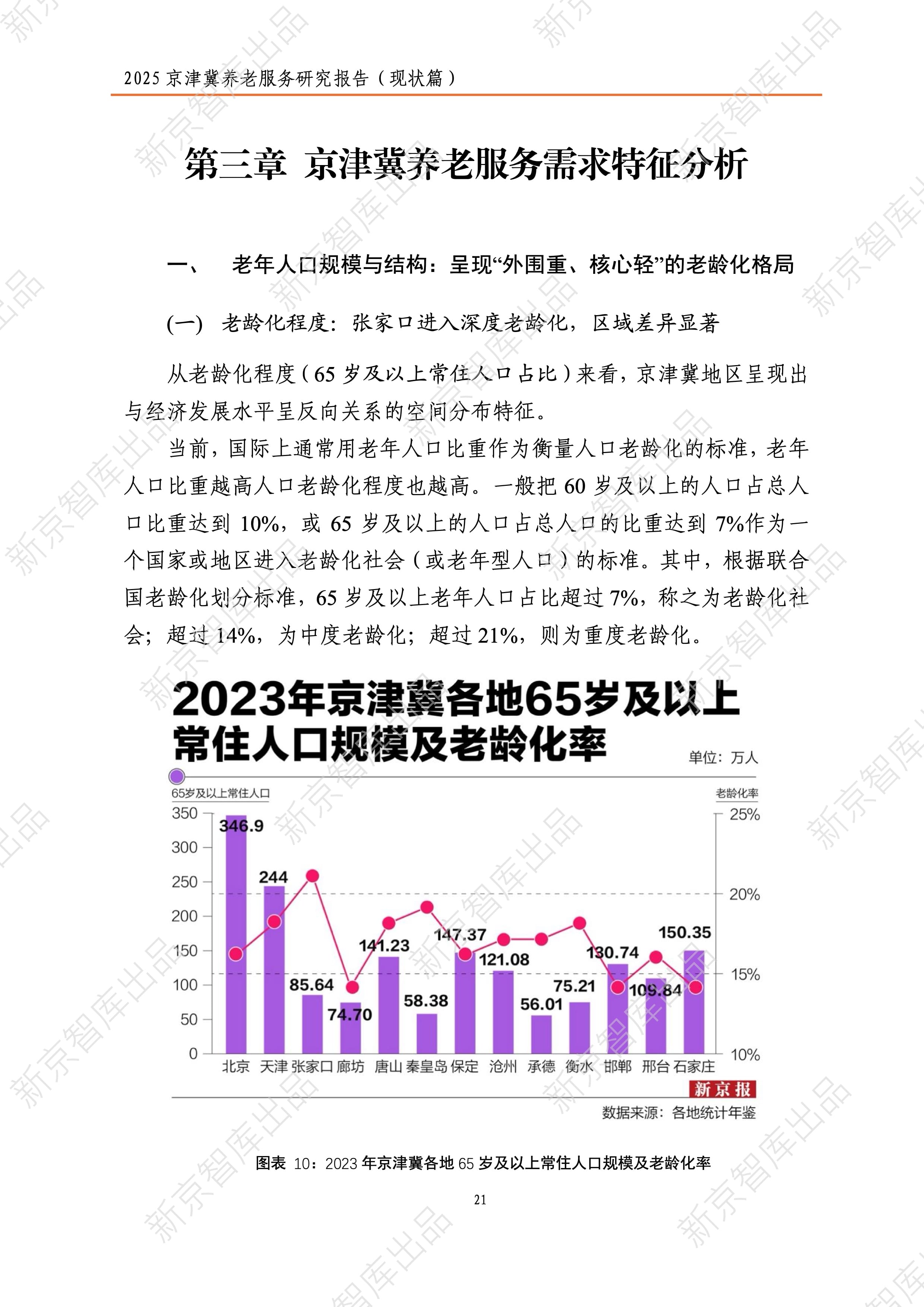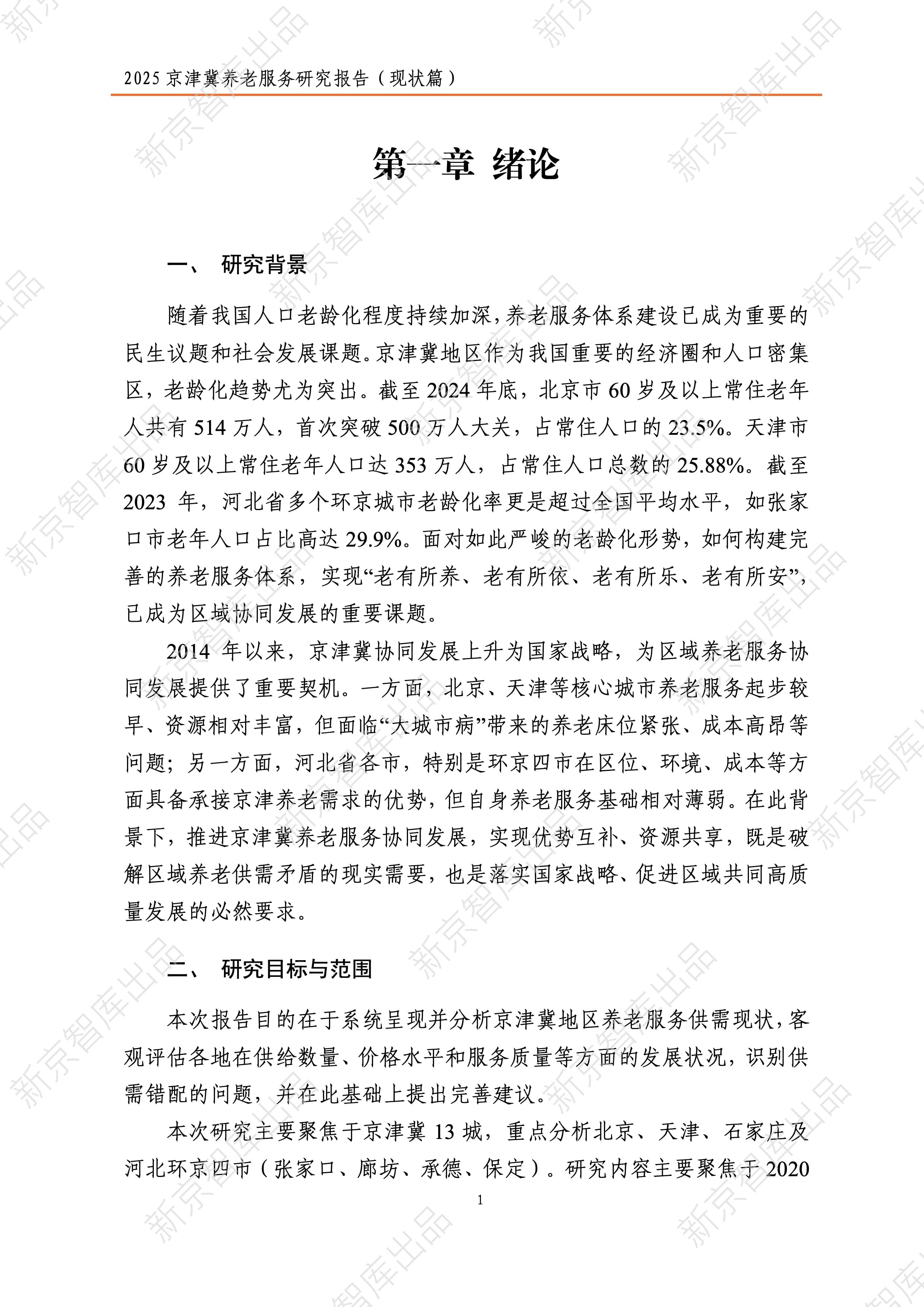 为了更好呈现京津冀地区养老服务的现状,10月29日,新京智库发布《2025京津冀养老服务研究报告(现状篇)》。报告主要基于对京津冀各地的养老服务供给及需求情况进行分析,并揭示各地潜在的养老服务供需不匹配问题,同时结合各地养老政策的制定、执行等情况,提出相关完善建议。报告全文如下。