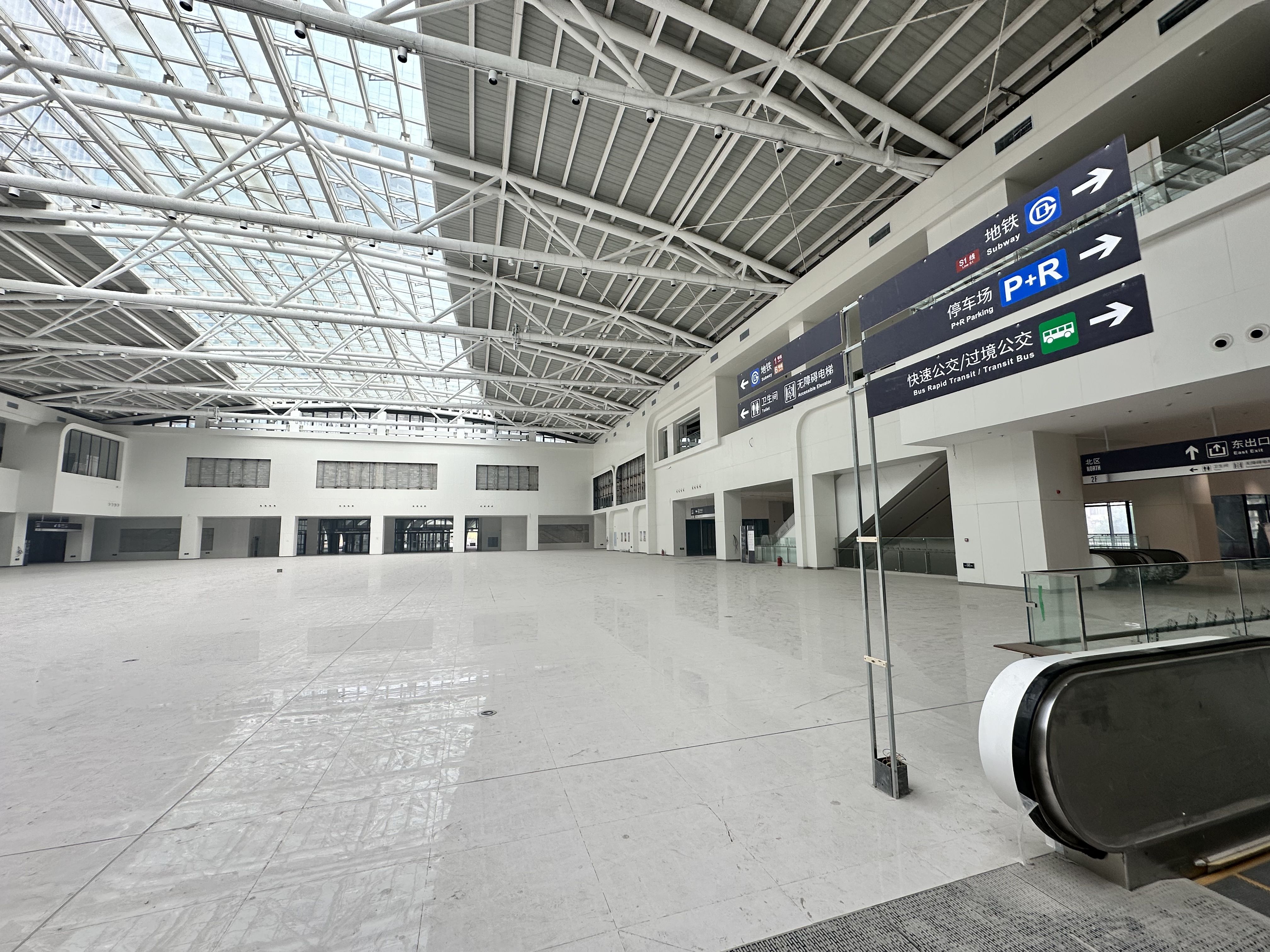 苹果园综合交通枢纽的北区二层换乘大厅已基本建设完成,其内部宽敞明亮。新京报记者 王贵彬 摄