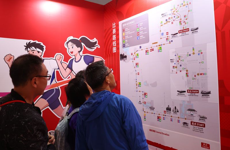 运动员观看比赛路线图。