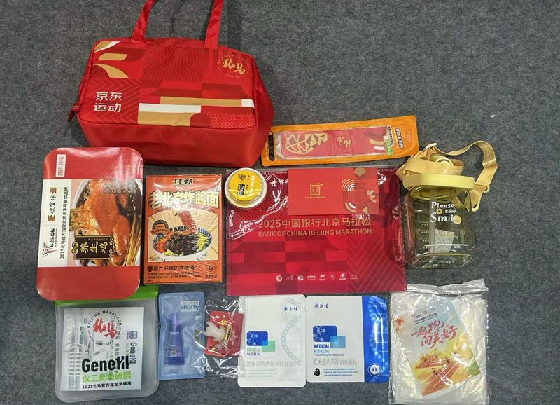 参赛包作为“主角”,备受选手关注,除了包含号码布、参赛服、雨衣等常规参赛物资外,今年还有老北京炸酱面、烧鸡、烤鸭卷、北马物资包、水杯、文创等新品,从运动能量补给到运动防护用品一应俱全,为选手们提供了全方位的保障。