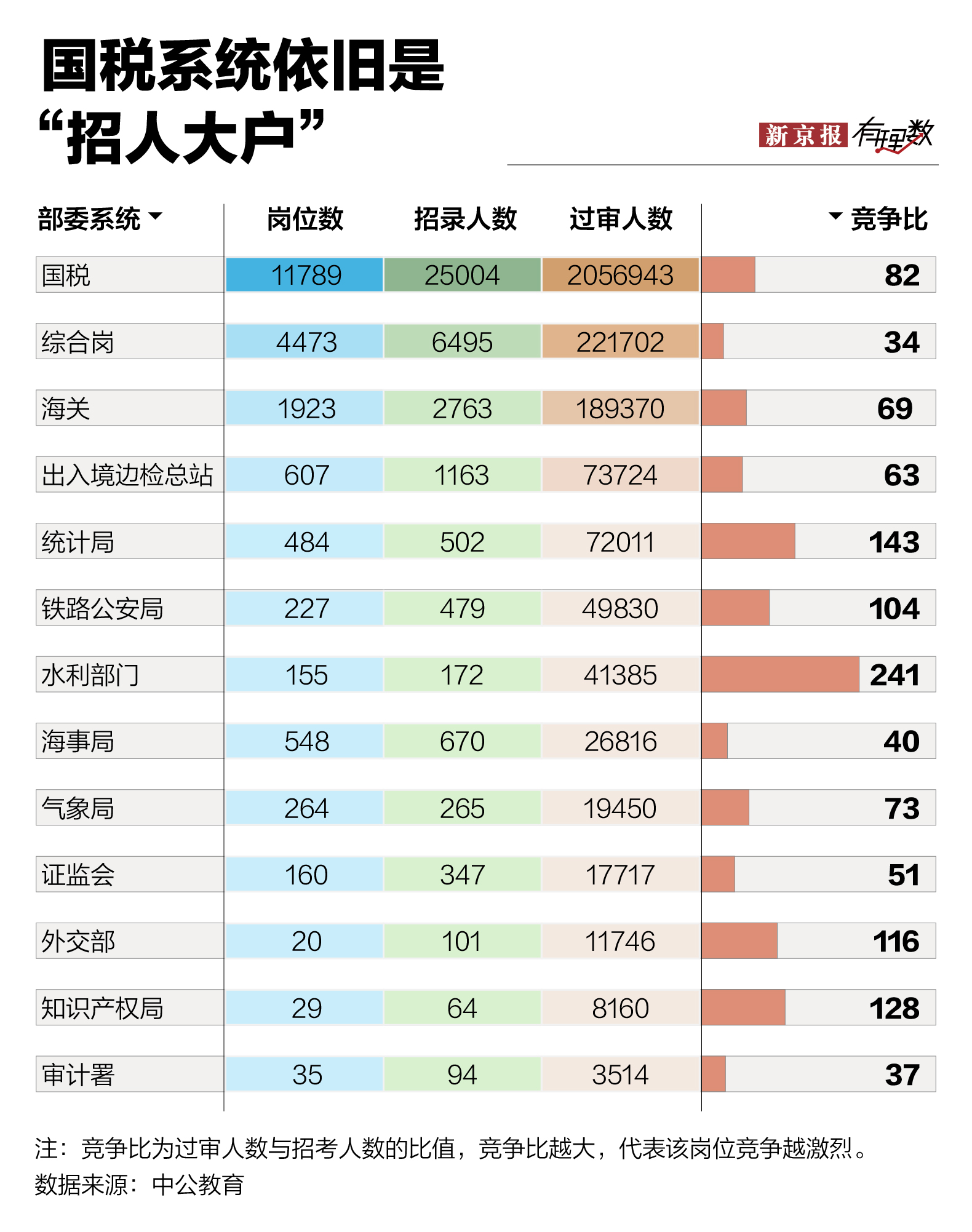 国考难不难?或许,国考的难不在于知识点复杂,而是异常激烈的竞争。从今年报考与招录人数可以看出,平均竞争比接近100:1,而在一些热门岗位,招录比更高。
