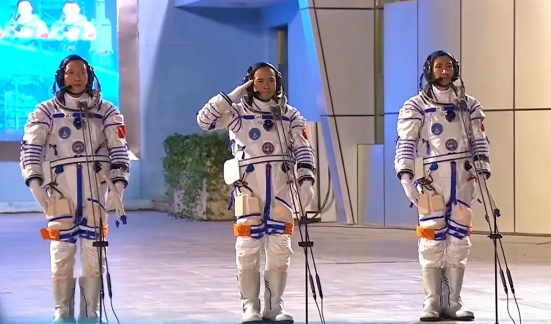 20时49分,张陆、武飞、张洪章3名航天员领命出征。空间站应用与发展阶段飞行任务总指挥部有关成员以及航天科技人员、各族群众代表在现场为航天员乘组壮行。