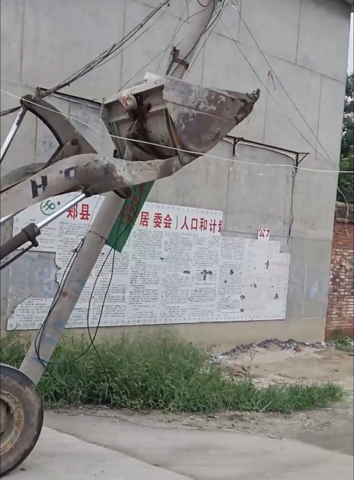 “得有二三十年了。”人们只有个大概的印象。它和村路上其他灰色、光秃秃的杆没什么不同,人们也习惯了它的存在。杆上常拴了绳子晾衣服——这是它倒下前唯一的使命。