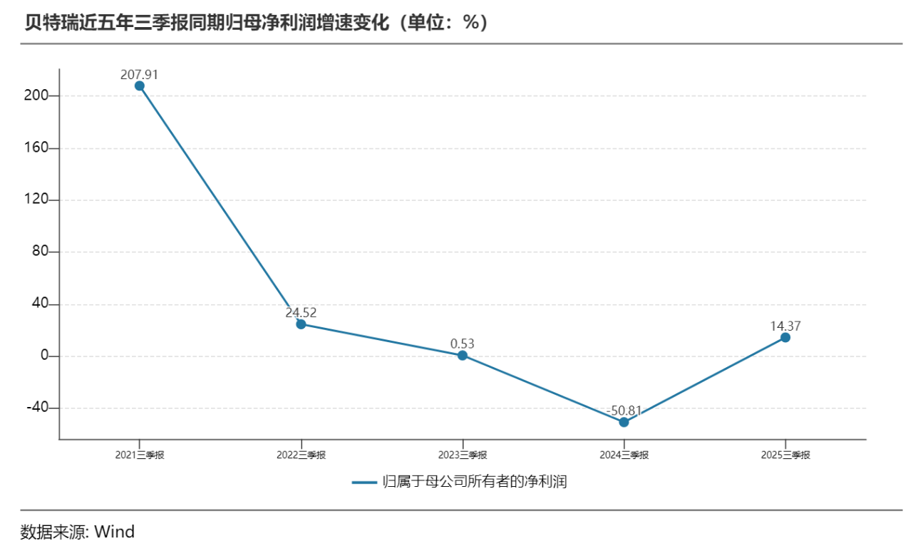 值得关注的,本季度贝特瑞归母净利润实现的14.37%同比增速水平,是近三年来该公司首度重回两位数的增速水平。截至10月31日收盘,贝特瑞每股收于36.45元,涨4.71%。