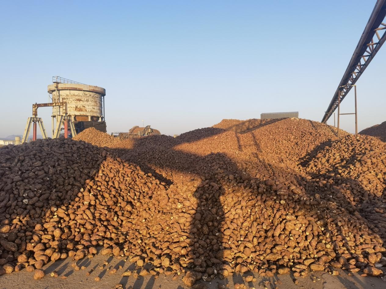 2025年10月21日,秦皇岛卢龙县,一家甘薯加工企业,秋收的甘薯堆成了山。新京报记者 寇家祥 摄