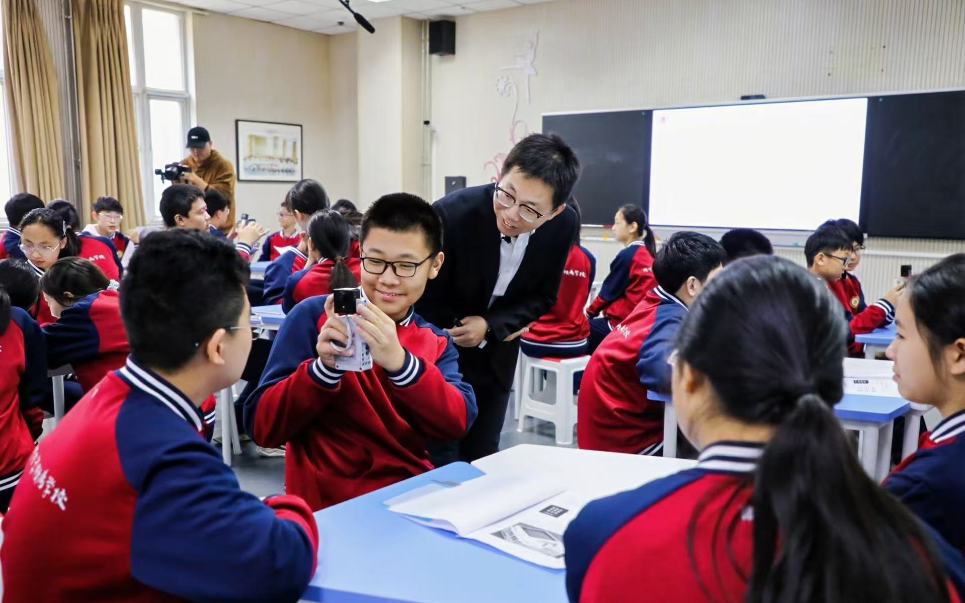 在另一堂针对七年级学生的公开课上,信息技术老师张之浩为中学生们带来《初识人脸识别》的课程。不论手机支付、还是刷脸进门,当下,以人工智能为核心的人脸识别已经渗透到大家的日常生活,其背后的原理何在?张之浩也通过游戏互动、短视频等形式为孩子们深入讲解AI识别人脸的流程,最后让同学们以小组为单位使用人脸识别技术“解锁”课堂上的“神秘人物”,从任务出发完成培养目标。“为给不同年级学生上好通识课,我校7位信息技术教师全员参与教研,在课程中融入人工智能的内容,同时我们也在不断更新丰富自身的知识技能。”张之浩向记者说道。