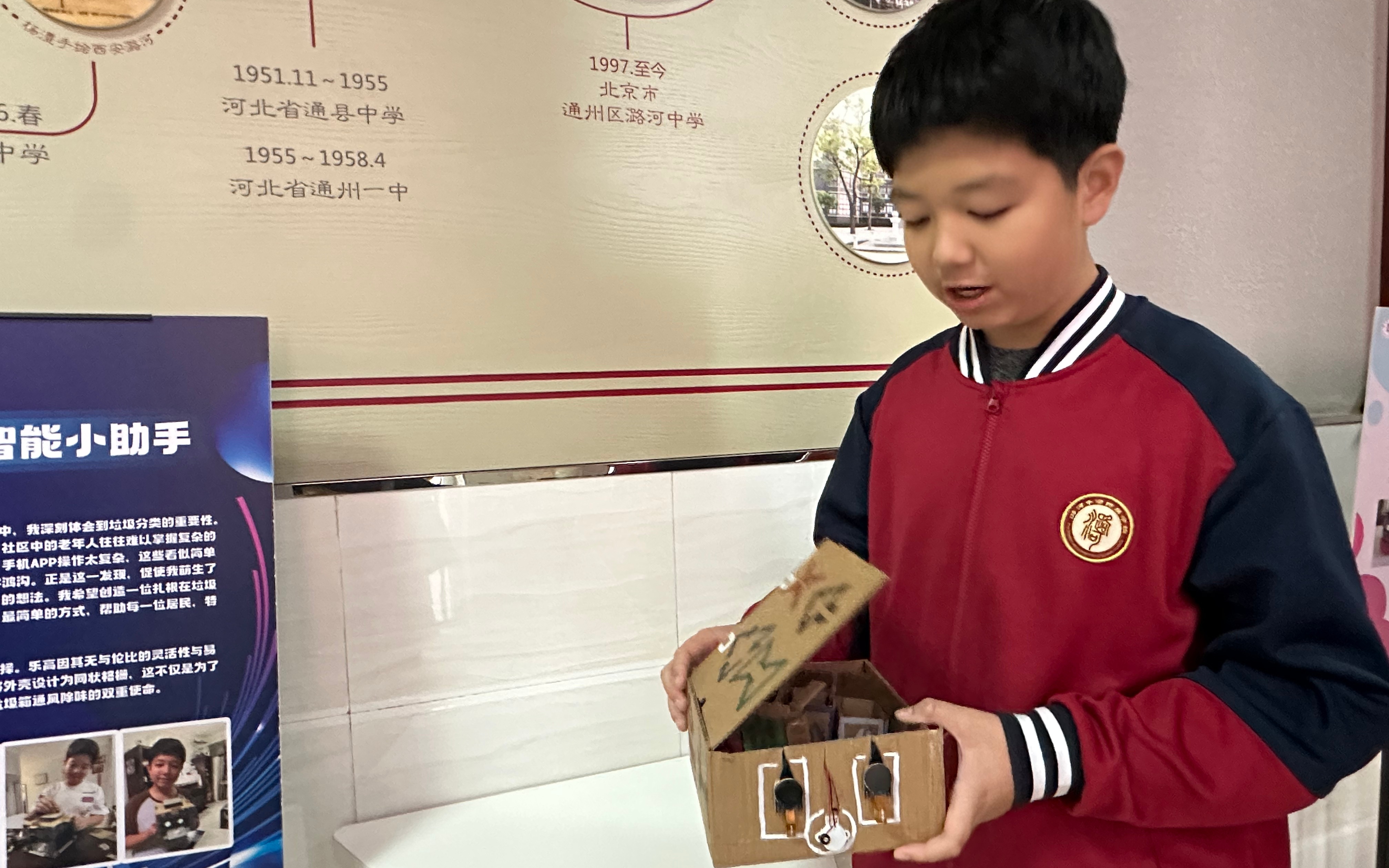 新京报记者注意到,该校还将几台可以进行互动的人工智能大屏幕摆在走廊,让学生们可以和AI玩成语接龙,学习如何利用人工智能工具生成图片、视频和音乐。此外,不仅将理论知识融入课程,该校机器人社团的学生们也在利用学校提供的智能体材料包,设计制作自己想象中的人工智能小助手:如飞机模型装上可以对话的智能体便能传达航空航天知识,垃圾桶装上智能体可以宣传垃圾分类常识……