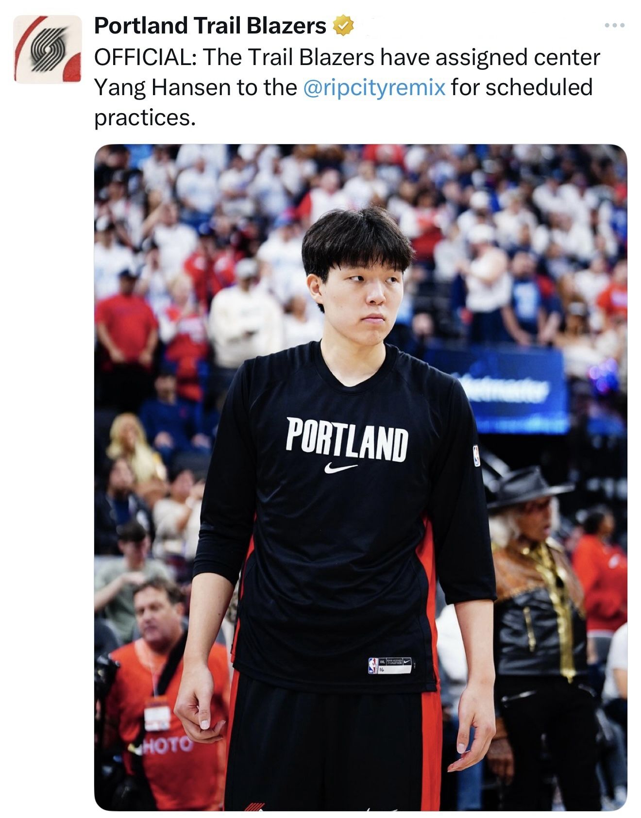 开拓者公告:杨瀚森下放至发展联盟进行训练