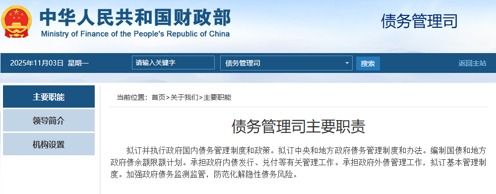 财政部网站“机构设置”一栏最新信息显示,财政部债务管理司已成立。