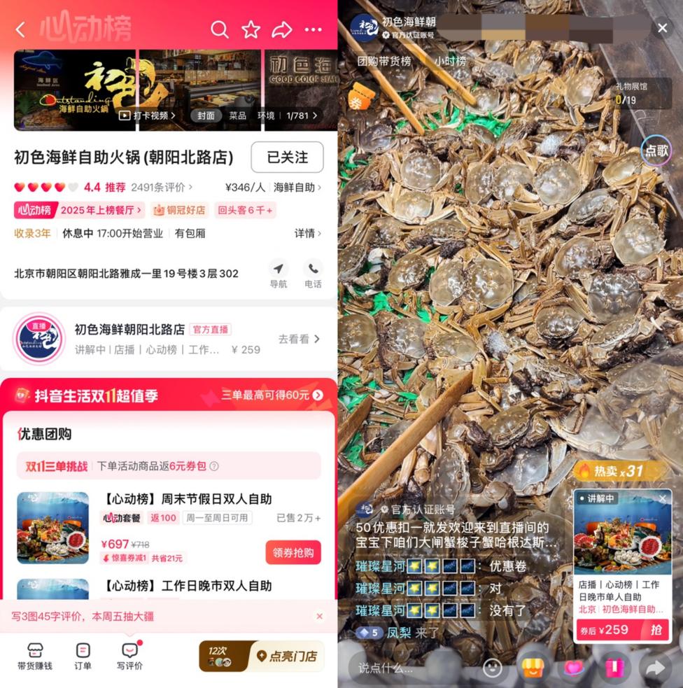 今年4月,初色海鲜自助火锅加大抖音运营力度,在第一个月拿到了2000多万的曝光量。今年秋季,他们又积极参与了平台“Let's北京·逛吃季”的子活动“美食消费季”,在平台和众多商家一起助力京城金秋消费。