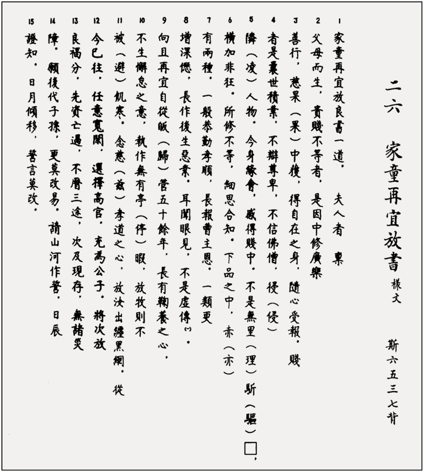我再举个例子。有一份敦煌文献是释放家奴为自由民的文书,大意是:有人因为修行不够,多少辈子的因果恶业加起来,这辈子才为奴。而我家有个名叫再宜的家奴,干了50多年活,从不偷懒,因此我念他有孝道,放他自由身。我这可是做了件福报很大的好事,我家祖祖辈辈和后世子孙都会因此无病无灾。老天爷,你给我做个证吧!日月星辰,我这可就不改了啊!