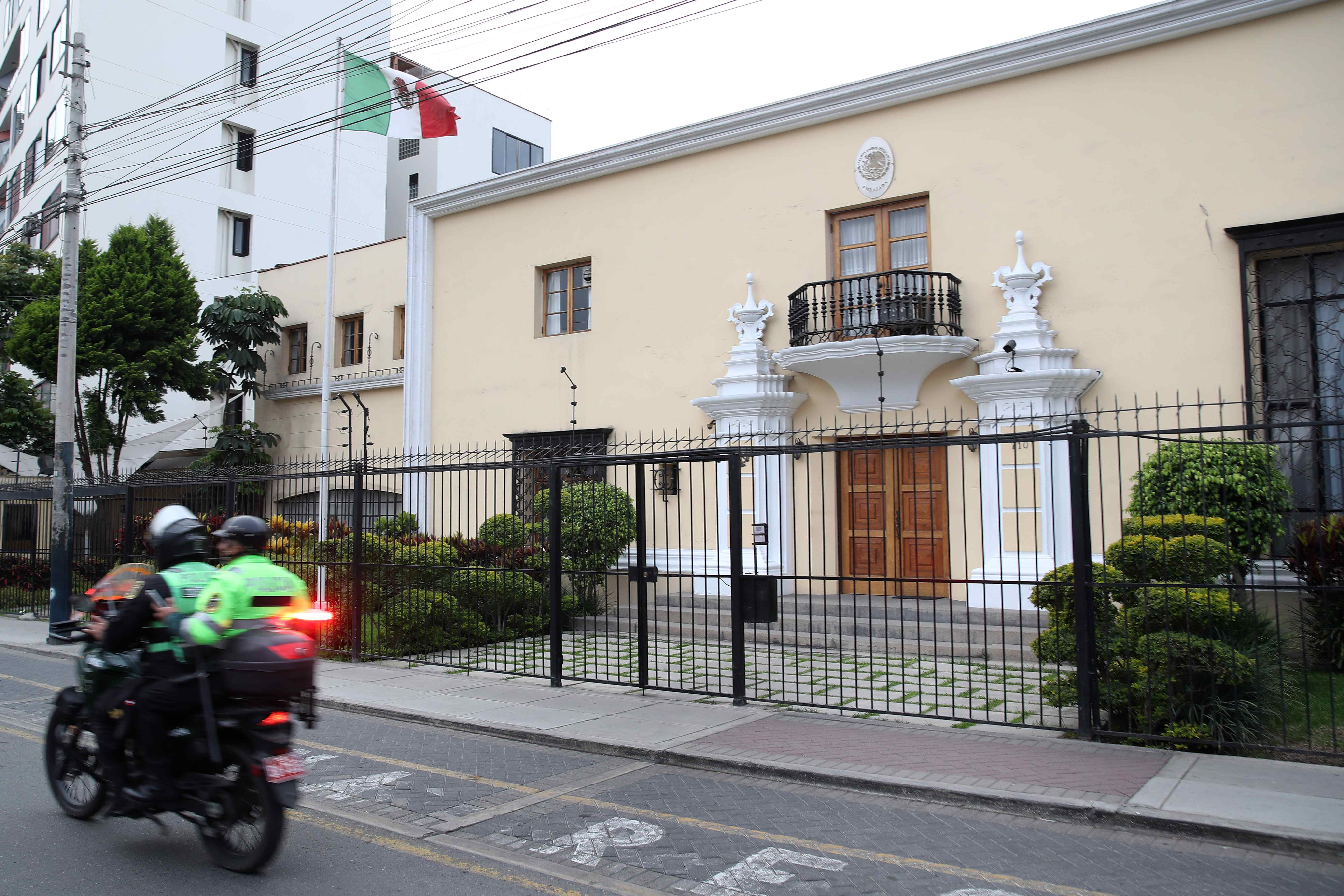 当地时间2025年11月3日,秘鲁利马,墨西哥驻秘鲁大使馆。秘鲁外交部长乌戈·德泽拉宣布,由于墨西哥驻秘鲁大使馆向秘鲁前总理查韦斯提供政治庇护,秘鲁已决定与墨西哥断绝外交关系。图/IC photo