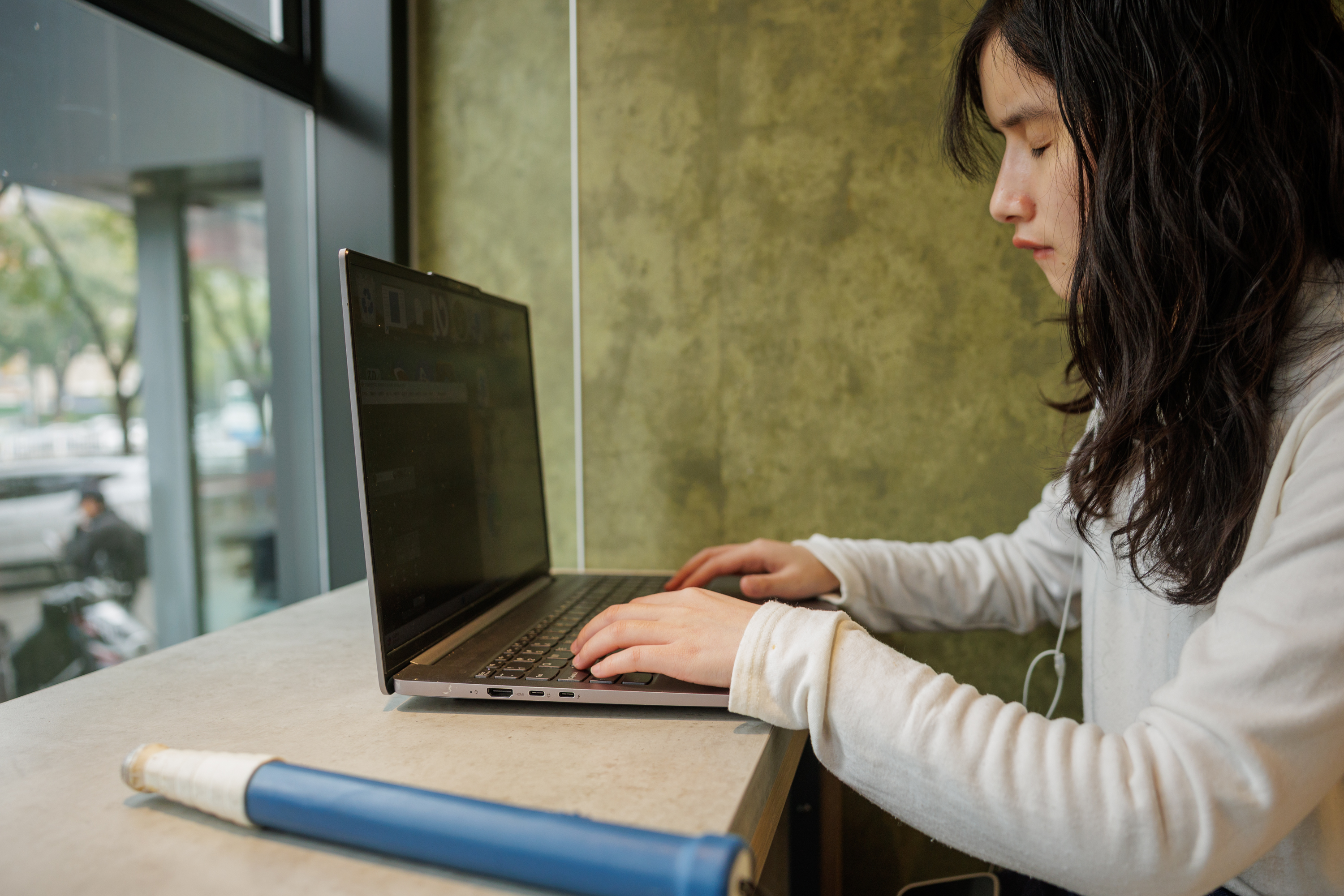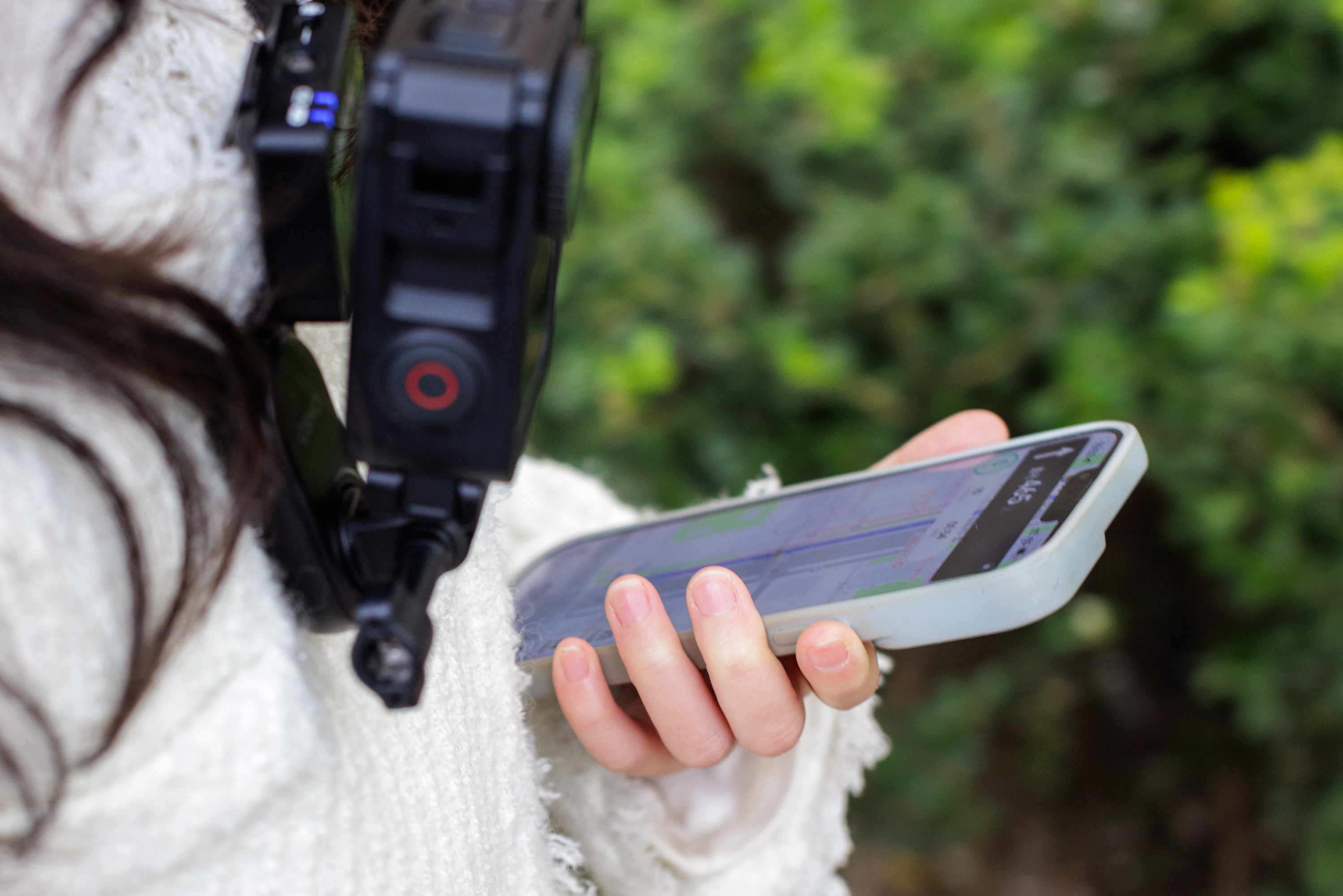 丸子使用导航为自己指引道路。挂在脖子上的运动相机是她平时出行的拍摄设备。
