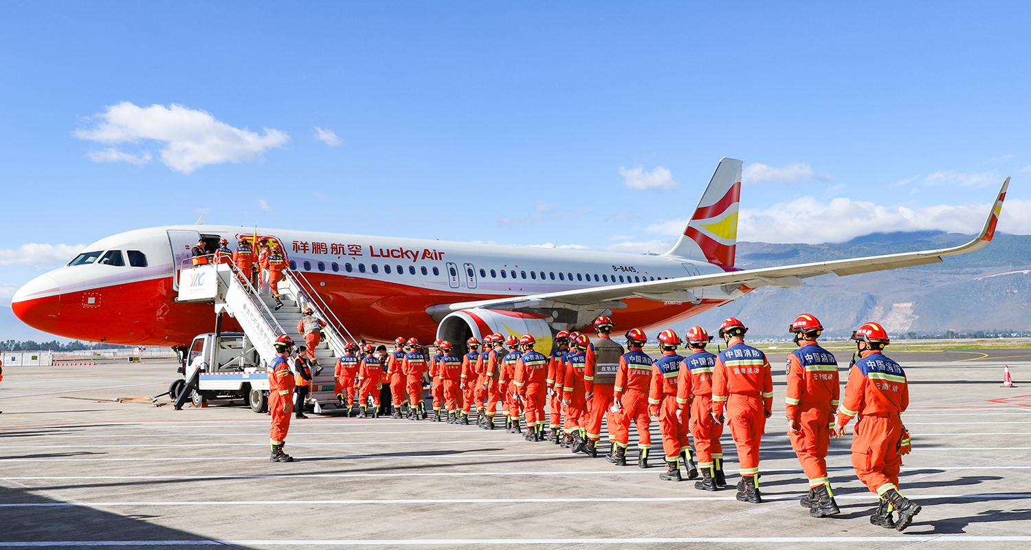 演练前,支队与丽江三义机场、祥鹏航空公司密切协同,启动航空投送联勤保障机制,调配空客A320客机执行任务,并开辟安检绿色通道,确保人员与装备快速通关、高效装载,最大限度缩短应急响应时间。