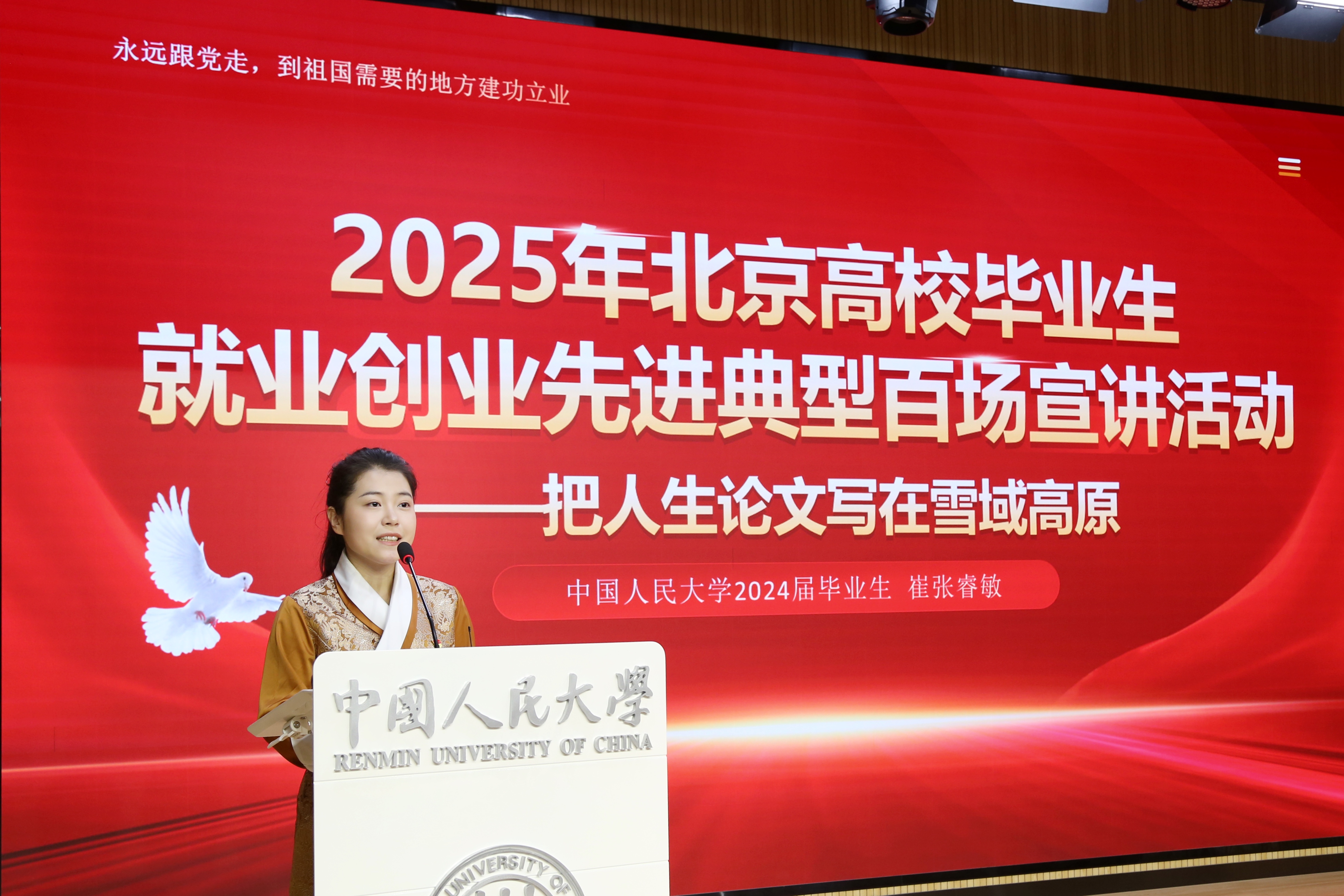 11月7日,由中共北京市委教育工作委员会、北京市教育委员会、北京市人力资源和社会保障局、共青团北京市委员会主办,中国人民大学承办的“永远跟党走,到祖国需要的地方建功立业”2025年北京高校毕业生就业创业先进典型百场宣讲活动正式启动。来自中国人民大学、北京科技大学等高校的六名毕业生依次登台,讲述了他们扎根基层一线、投身祖国建设,坚守初心、奉献青春的故事。