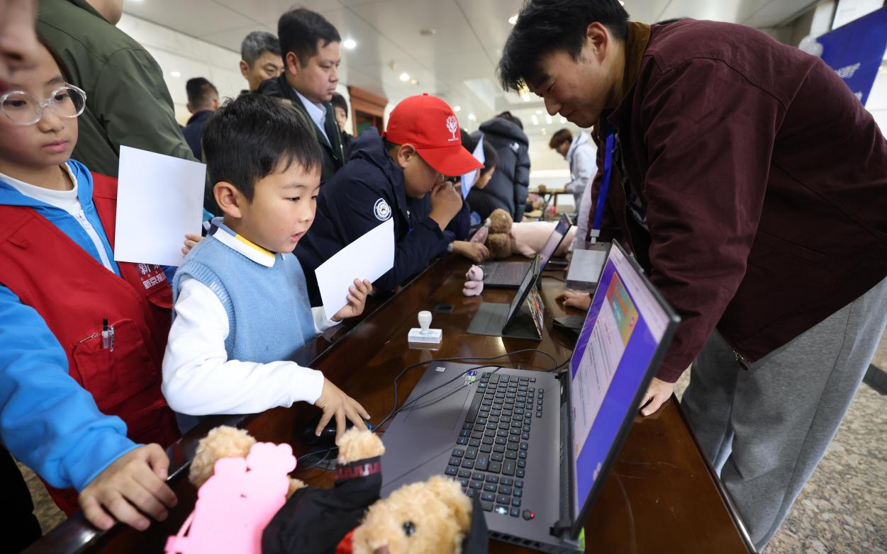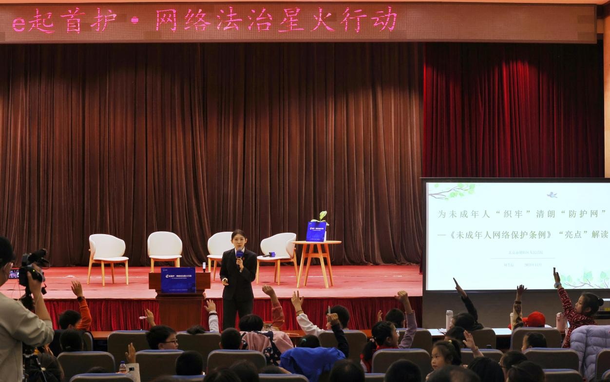深入解读关于未成年人的网络保护法律规定,共同探讨如何在人工智能时代让儿童安全触网,大学生带领孩子们通过游戏的方式提升网络素养……11月8日上午,北京市朝阳区人民法院第一法庭内外,欢乐声此起彼伏,这是“e起首护·网络法治星火行动”——青少年网络普法与安全素养主题活动的现场。