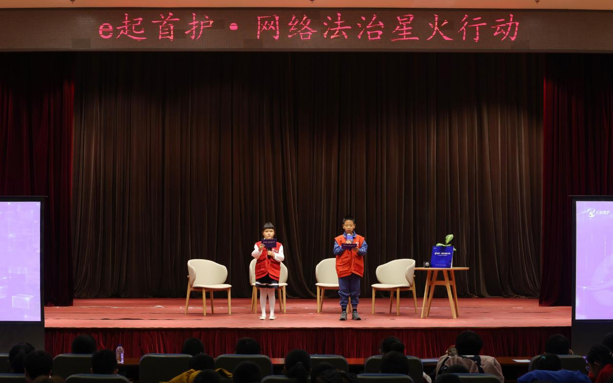 “作为新京报小记者,我们深知依法上网意识是安全上网的第一道防线。在此,我们郑重发出倡议,让我们携手,共同‘做网络法治守护者’ !”活动现场,来自白家庄小学的李芊诺和培新小学的薛梓安代表全体新京报小记者发出共同倡议。