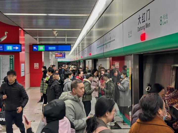 上周六(11月8日),北京地铁8号线大红门站正式开通启用,并实现与10号线换乘。至此,北京地铁8号线这条“地下中轴线”的35座车站全部开通,8号线大红门站还成为北京轨道交通路网中的第100座换乘站。今天(11月10日),该站迎来开通后的首个工作日早高峰,记者现场探访时注意到,在高峰时段,乘客上车还需要多等一两趟地铁。