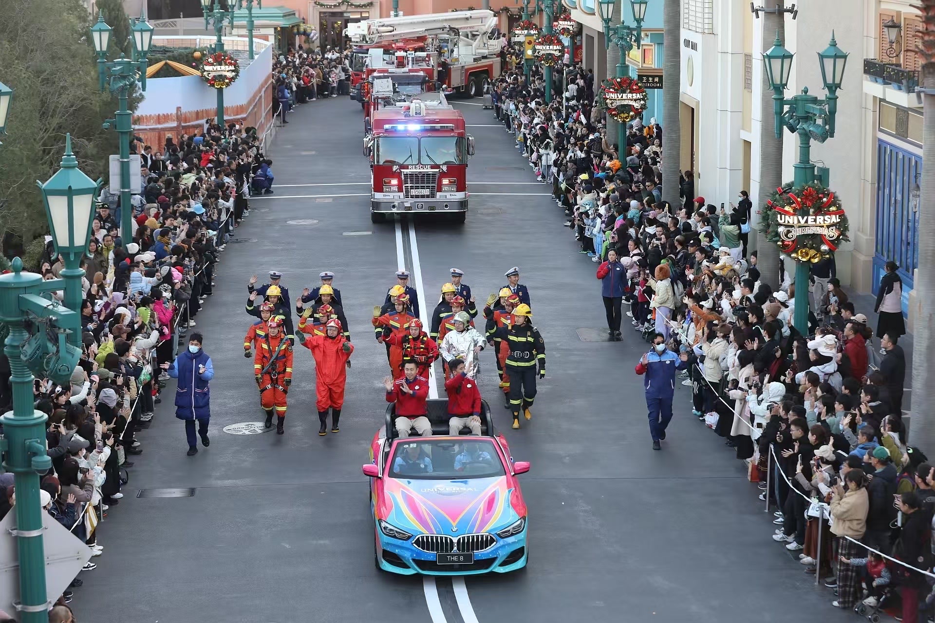 9日下午的北京环球度假区好莱坞大道,早已被期待的人群环绕。跟随着园区内循环播放的活动主题播报响彻全场。不同于常规花车巡游,此次领航的“火焰蓝”队伍自带硬核气场——20名消防员身着特种救援服、灭火救援服、抢险救援服、春秋常服,步伐铿锵有力,眼神坚定执着,用挺拔的身姿诠释着“城市守护者”的责任与担当。
