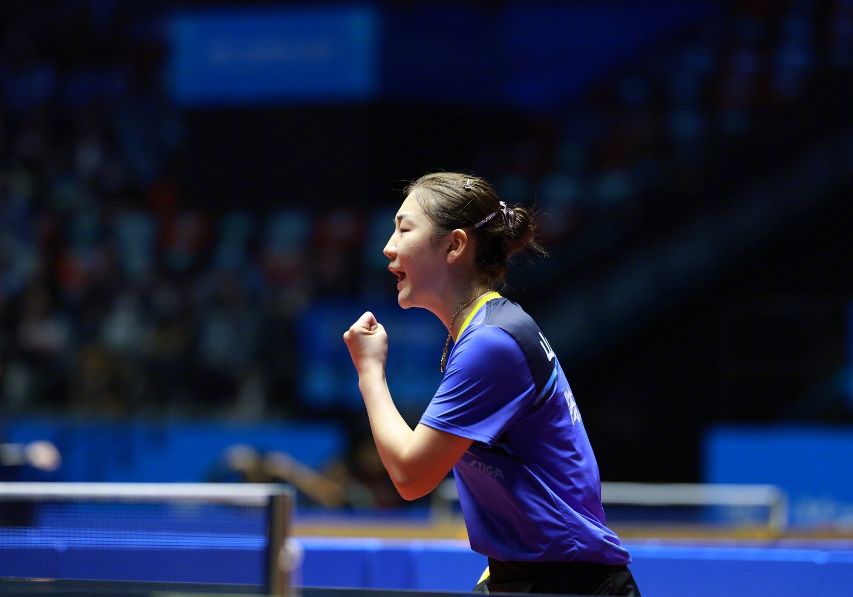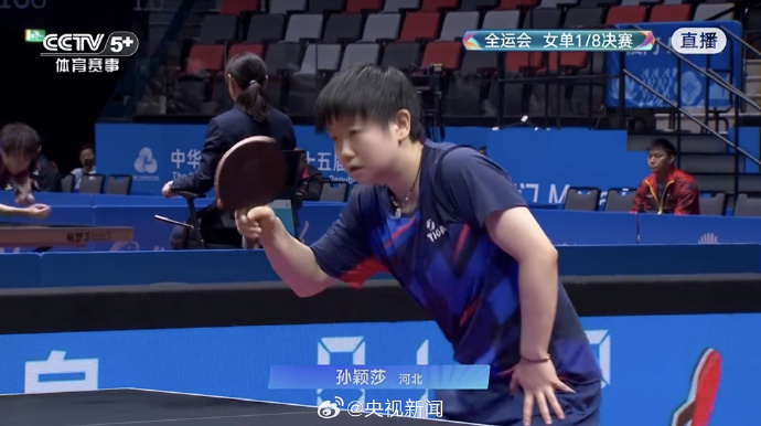 第十五届全运会乒乓球女单1/8决赛,孙颖莎战胜对手,晋级8强。