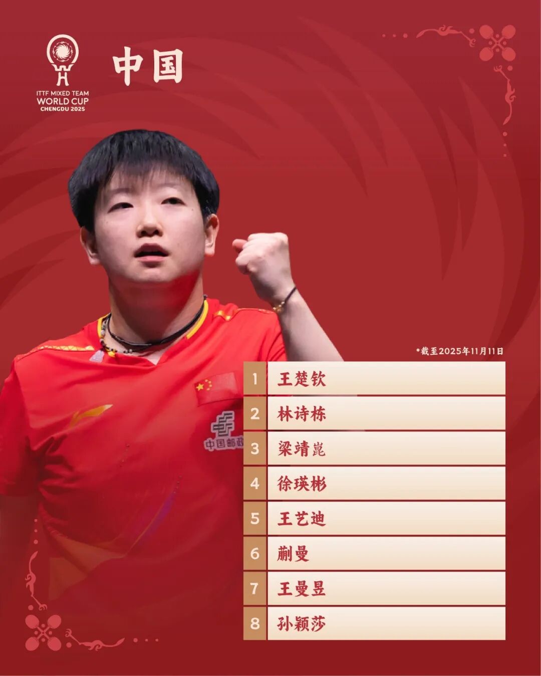 王楚钦、孙颖莎等运动员参加2025年成都混合团体世界杯