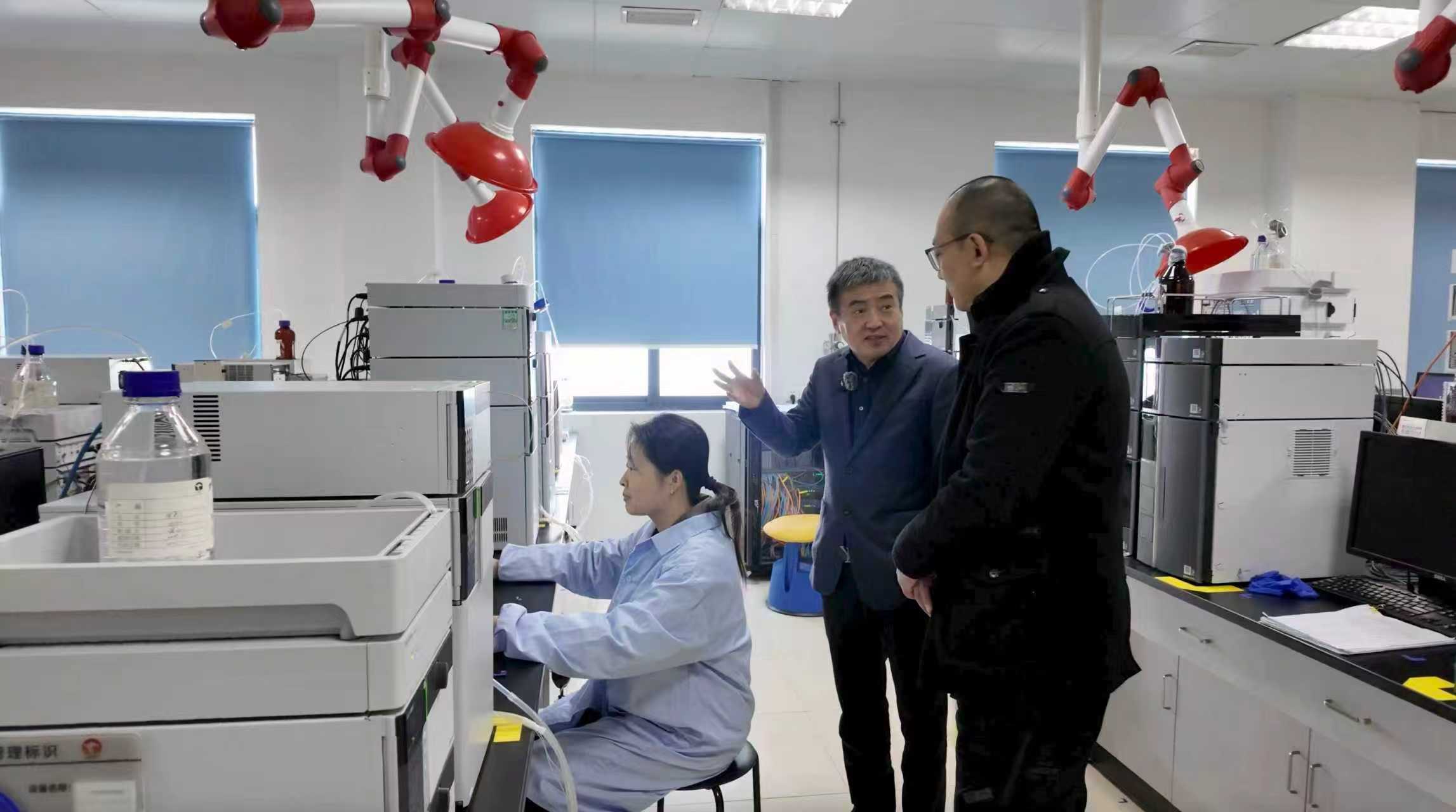 森萱医药董事长吴玉祥向记者介绍企业实验室情况。新京报贝壳财经记者俞金旻 摄