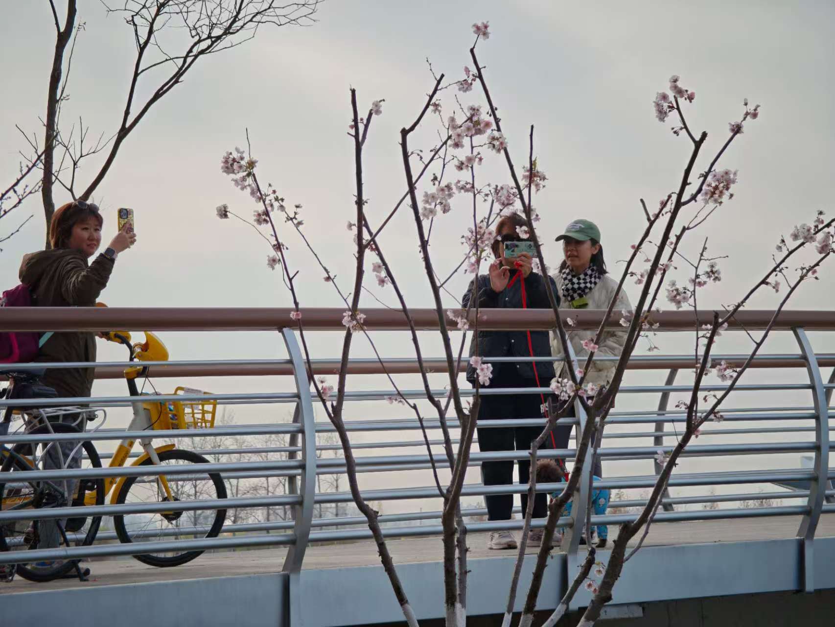 樱花为何在初冬开放?对此,记者联系了玉渊潭公园高级工程师赵爽。据她介绍,樱花此时开放可以分为两个原因,一是品种特性,二是气候触发。部分樱花品种天生具备一年两次花芽分化的能力,被称为“两季樱”或“秋樱”,比如十月樱、奖章樱、子福樱等。这类品种的秋季花期通常从10月延续至12月,花朵饱满规整,是遗传特性决定的正常现象,北京部分公园已引种这类品种。另外,气候异常也会导致“二次开花”,若樱花并非两季品种,秋季开花多是气候“误判”引发。比如夏季高温干旱导致提前落叶,秋季出现“十月小阳春”式回暖,温度达到樱花开花的有效积温,就会刺激休眠花芽提前萌发,这种现象被称为“二次开花”。