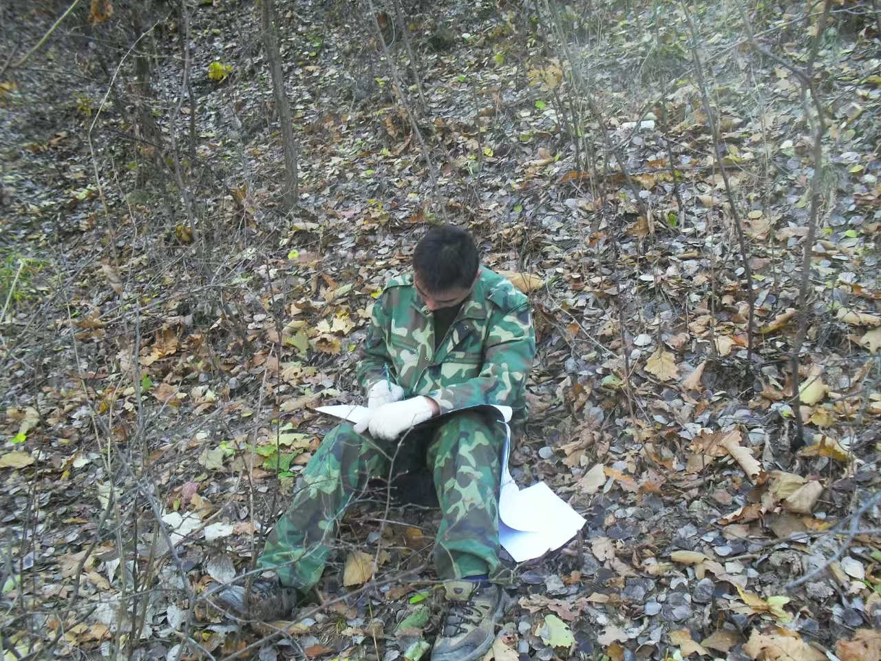 说到这里,李建亮拿起一支笔,在办公桌上的一张白纸上比画:很多时候,样地调查表上这样写,先到某某村,村里有个大石头,沿着大石头附近的小路向前走五十米后,再向西南70°走一百米有棵油松,顺着油松进山沟,有一座小庙,向左25°走八百米后上梁头(山顶),下山……要是没找到那座小庙,准是走错了,得回过头去重新找。