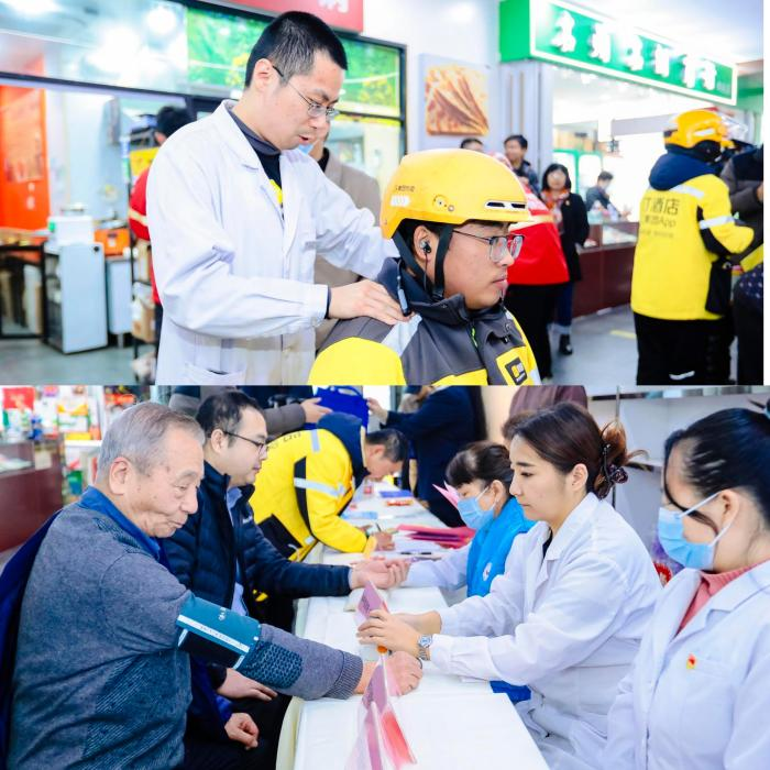 活动现场人气满满,京城快递小哥、社区居民纷纷驻足,我行工作人员早早备好暖宝宝、保暖手套、急救包等实用物资,方便奔波间隙的快递小哥随时取用;同步联动属地医疗机构设置便民服务点,提供血压测量、颈肩放松、膝盖护理指导等关怀服务,让忙碌的配送员能歇脚、取暖、享便利。