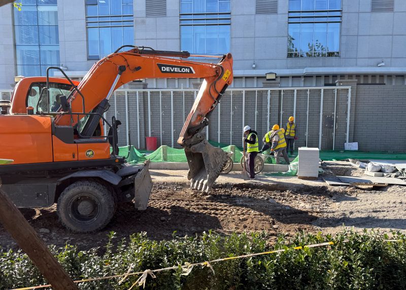 北京北站落客区,工人正在抓紧施工。相关改造完成后,北京北站落客区交通服务功能将显著提升。目前,临时落客点交通繁忙,提醒送站车辆即停即走、尽快驶离;建议市民旅客提前抵达车站,预留充足换乘时间,避免耽误行程。