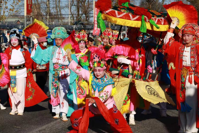 秧歌表演庆祝“开集”。根据记载,早在明代初期,这里就是声名远播的集市重镇,也因集市起名为“西集”。西集镇被运河和潮白河包围,土质肥沃,适宜果蔬种植,所以大集上自产粮、自产果蔬多,成为特色。