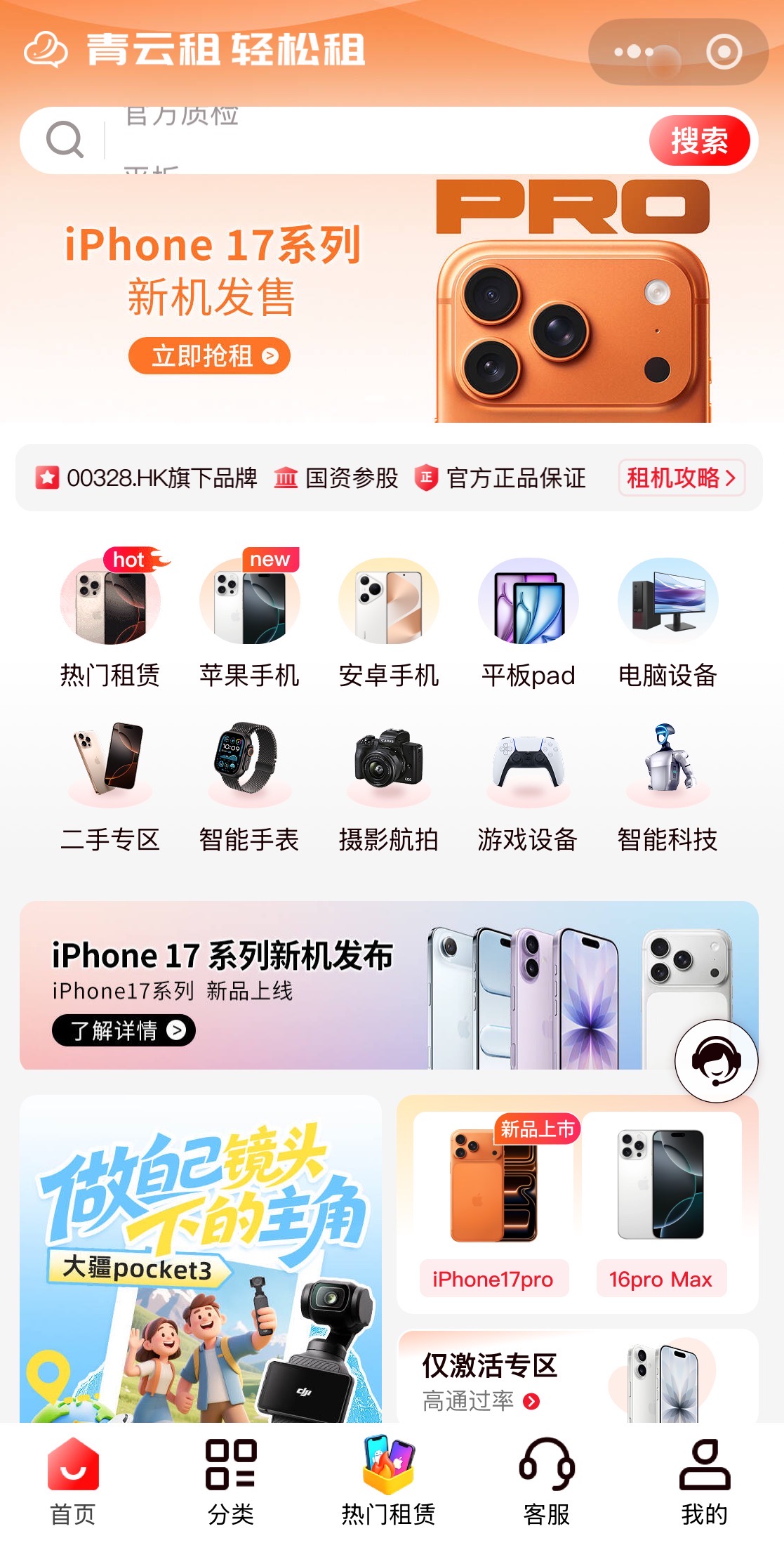 青云租的租机页面,同样写着“国资参股”。图/青云租小程序截图