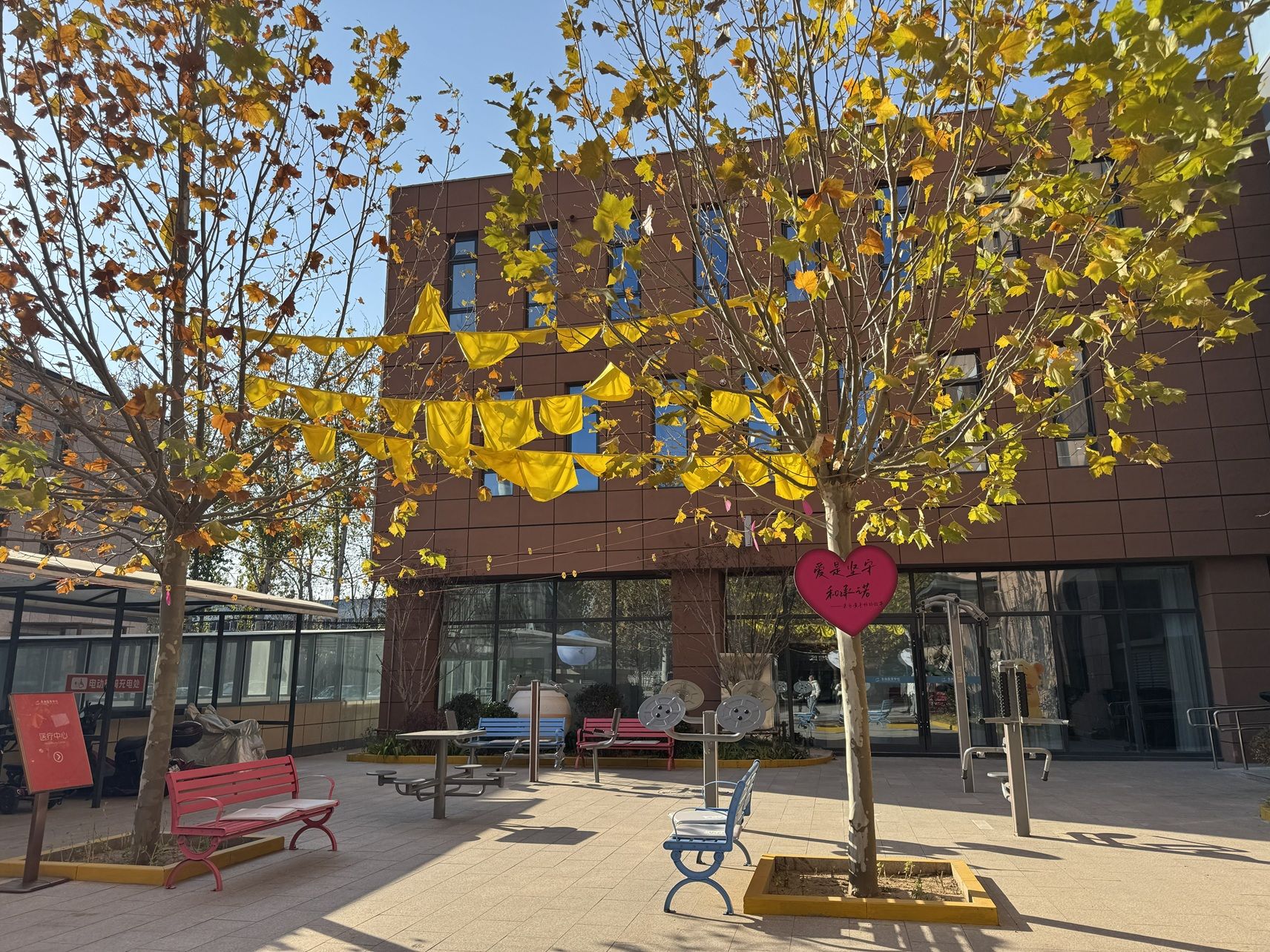 从北京东三环劲松出发,一个小时左右,便抵达位于河北燕郊的方舟医养中心。这座曾经的工业园区,如今被粉色花束、蓝色气球、黄色旗帜环绕,化身成“童话般”的老年人家园。