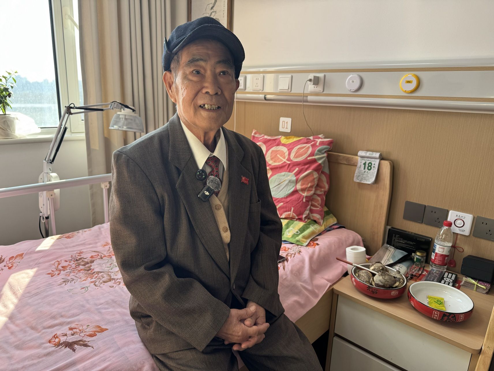 今年90多岁的鞠浩荃,是一名北京农业职业学院退休教师,原本住在北京东三环劲松区域。3个月前,选择入住河北燕郊的养老中心,11月18日,是他92岁生日。女儿们特地来看他,远在上海的学生还给他送来了水仙花庆生。